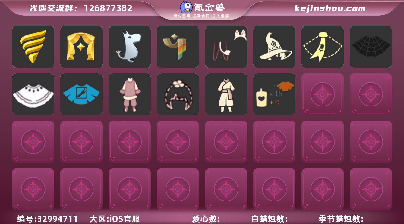 7季卡】两千白蜡白枭新年裤巫师帽绊爱王子围巾 区服:国服ios,换绑时间:1.26登入方式:手机【7季卡】两千白蜡白枭新年裤巫师帽绊爱王子围巾福娃蜘蛛斗阳伞折扇秋千,蜡烛数量:2057,爱心:239,当前身高1.883,最高身高1.283,最矮身高13.283,已经毕业地图:晨岛,云野,雨林,霞谷,暮土,禁阁,已经毕业季节:青鸟季,姆明季,表演季,潜海季,稀有礼包:祥云瑞气服饰,彩虹武士裤,水母肩饰,姆明饰品套装,巫师帽,绊爱套装,贝壳,玉兔,年年有余,tgc,创始人礼包,小王子围巾,新春福娃,蜘蛛斗篷,白雪斗篷,音韵吉他,周年庆吉他,灯笼,阳伞,献瑞折扇礼包,情人秋千,青衫落拓礼包,热门物品:蝴蝶结,公主头,正太头,樱花头,猫猫头,搓澡巾,武士裤,花环头饰,宴会围巾,虚荣发型,红耳机,白金斗篷,白鸟斗篷,吉他,铃铛,雨伞