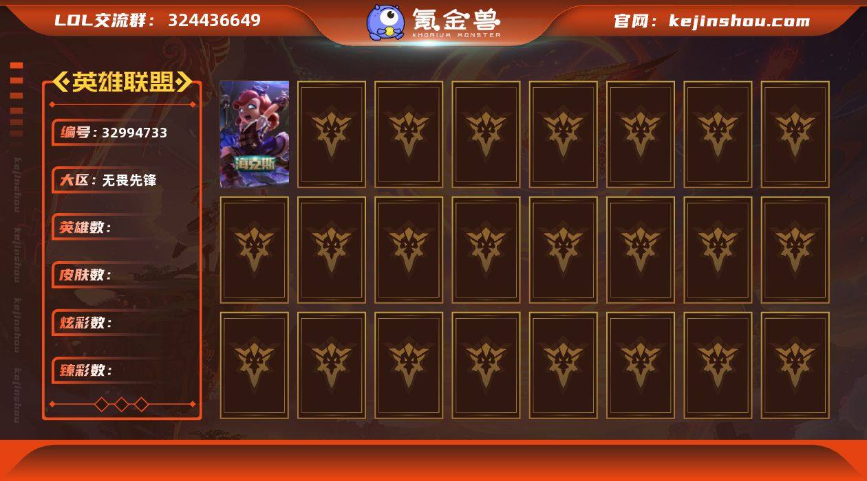 [18194259]1终极 5神话 43限定 30传说 69史诗 286皮肤 146炫彩 172英雄 可二次 可修改实名 【海克斯】海克斯 安妮 【限定】2021 全球总决赛 嘉文四世 【情人节限定】甜心宝贝 娑娜 【赛季限定皮】胜利行刑官 德莱文,胜利凤凰 艾尼维亚,胜利女神-菲奥娜,胜利之运 崔斯特,胜利剑圣 易,胜利女神 娑娜,胜利巨口 克格莫,胜利之王 泰达米尔,胜利枪神 格雷福斯,胜利女神 奥莉安娜,胜利机器人 布里茨,胜利女神 瑟庄妮 【冠军限定系列】S13 T1 李青,S1FNC 酒桶,S1FNC 迦娜,S1FNC 嘉文四世,S2 暗杀星 努努,S2 暗杀星 慎,S3 SKT T1 李青,S5 SKT T1 阿利斯塔,S5 SKT T1 蜘蛛 【冰雪节限定】阿木木:“主人不要我了”,冰雪节 格雷福斯,冬境仙灵 索拉卡,胡桃夹子 萨科,圣诞开心鬼 提莫,圣诞精灵 崔丝塔娜,圣诞老人 德莱文,邪恶圣诞老人 维迦,幸福女神 乐芙兰 【泳池派对】泳池派对 吉格斯,泳池派对 厄运小姐,海之歌 泽丽 【万圣节限定】魅惑女巫 莫甘娜,南瓜头 费德提克,无头骑士 赫卡里姆 【周年】10周年 安妮,10周年 萨勒芬妮 【其他限定/神话皮】十五周年纪念 希维尔,暗裔英雄 盖伦,至臻 暗裔英雄 嘉文四世,源代码 乐芙兰,防暴天使 凯尔,波比的巧克力工坊,防暴士兵 辛吉德,钢铁之翼 艾尼维...