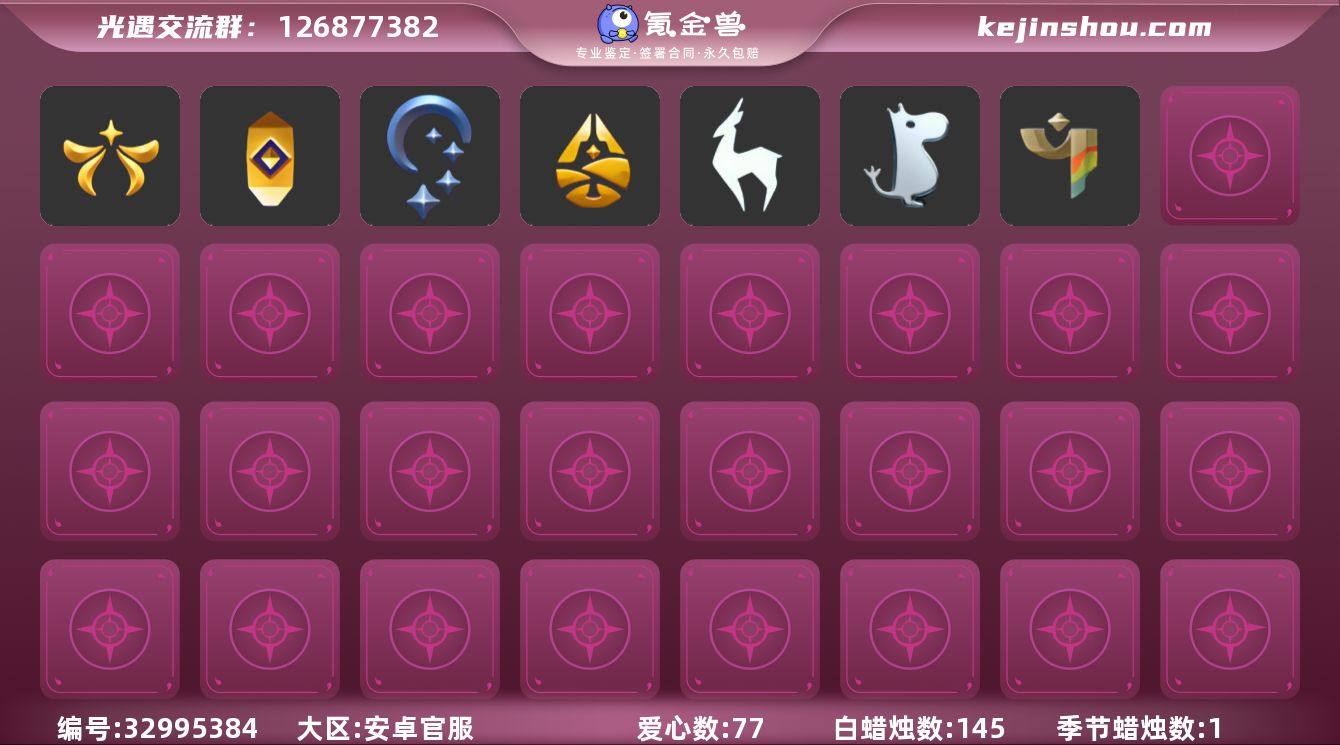 区服:国服安卓官服,换绑时间11.3'登入方式:手机【8季卡】武士裤新年裤鹿角绊爱王子围巾蝙蝠斗正太头猫猫头'蜡烛数量:145'爱心:77'当前身高13.936'最高身高2.033'最矮身高14.033'已经毕业地图:霞谷,已经毕业季节:彩染季,姆明季,九色鹿季,归巢季,夜行季,追忆季,欧若拉季,稀有礼包:祥云瑞气服饰,肯德基联动,星月头冠,神鹿祝福头饰,彩虹耳饰,彩虹耳机,圣诞鹿角,姆明饰品套装,南瓜头,绊爱套装,渐变双马尾发型,大桔大利,四叶草头饰,迷你大耳狗发饰,心心相印发饰,小王子围巾,蝙蝠斗篷,皮皮猫,冥龙南瓜,青衫落拓礼包,粽子头饰,热门物品:正太头,樱花头,猫猫头,搓澡巾,武士裤,白棉裤,背带裤,花环头饰,宴会围巾,虚荣发型,红耳机,黄鼠狼面具,红狐狸面具,花瓣斗篷,灯泡斗篷,红金斗篷,白金斗篷,吉他,尤克里里,笛子,雨伞