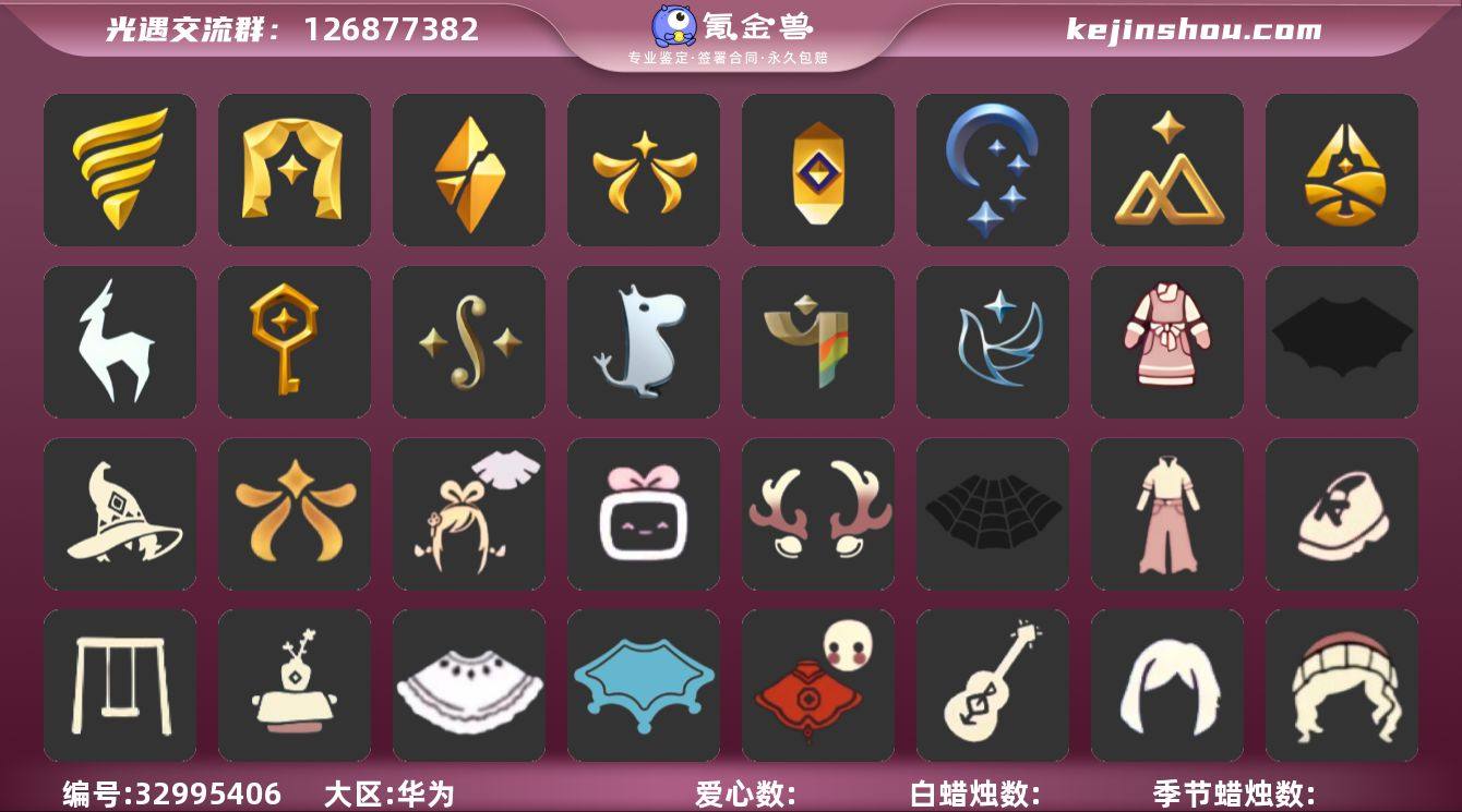 区服:华为服登入方式:手机蜡烛数量:6768爱心:906当前身高2.301最高身高2.068最矮身高14.068已经毕业地图:晨岛,云野,雨林,霞谷,暮土,禁阁已经毕业季节:青鸟季,彩染季,姆明季,二重奏季,筑巢季,九色鹿季,归巢季,拾光季,夜行季,追忆季,欧若拉季,破晓季,表演季,潜海季稀有礼包:祥云瑞气服饰,阔腿牛仔裤,跃动跑鞋,星月头冠,彩虹耳饰,彩虹耳机,巫术犄角,圣诞鹿角,优雅领结,奔离远行发型,多彩绒绒帽,巫师帽,南瓜头,绊爱套装,贝壳,雪花发卡,玉兔,大桔大利,四叶草头饰,AURORA 之翼,新春福娃,皮皮猫装扮,蜘蛛斗篷,蝙蝠斗篷,白雪斗篷,暖冬瑞雪,音韵吉他,祥云瑞气纸伞,凯旋提琴,情人秋千,茶桌,皮皮猫,冥龙南瓜,中国绊爱大铁头热门物品:蝴蝶结,公主头,正太头,樱花头,猫猫头,搓澡巾,武士裤,白棉裤,背带裤,花环头饰,宴会围巾,虚荣发型,红耳机,黄鼠狼面具,红狐狸面具,花瓣斗篷,灯泡斗篷,红金斗篷,白金斗篷,白鸟斗篷,吉他,尤克里里,高音钢琴,笛子,铃铛,雨伞