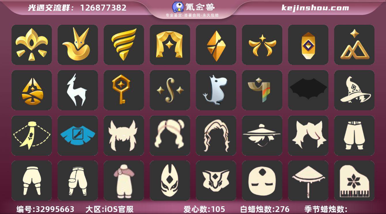 【lyg278】区服:国服ios,换绑时间:3.18,登入方式:手机【16季卡】白枭新年裤巫师帽绊爱蝙蝠斗蜘蛛斗白雪斗秋千小提琴茶桌音乐桌,蜡烛数量:276爱心:105,当前身高1.568,最高身高1.344,最矮身高13.344,已经毕业地图:晨岛,云野,雨林,霞谷,暮土,禁阁,已经毕业季节:彩染季,姆明季,二重奏季,筑巢季,九色鹿季,归巢季,拾光季,追忆季,欧若拉季,破晓季,表演季,潜海季,王子季,集结季,稀有物品:挂肩外袍,月华霓裳,阔腿牛仔裤,优雅三件套,疯女巫长裙,爱丽丝围裙套装,向日葵连衣裙,肯德基联动,奔行远离服饰,史立奇服饰,夏日凉鞋,玉兔拖鞋,雪人暖心靴,跃动跑鞋,祥云瑞气服饰,龙鳞长袍,园丁装扮,彩虹武士裤,树精肩饰,优雅领结,水母肩饰,姆明饰品套装,夏日有友,时尚火焰墨镜,时尚爱心墨镜,温暖绒帽,年年有余,多彩绒帽,南瓜头,巫师帽,蛛网朋克,绊爱套装,奔远离发型,史力奇帽子,大桔大利,鲤鱼龙门,锦标赛桂冠,小狗周年头饰,雪花发夹,贝壳头饰,玉兔,迷你大耳狗,大耳狗头饰,四叶草头饰,心心相印头饰,星月头冠,神鹿祝福头饰,金鳞耳坠,彩虹耳饰,彩虹耳机,日光耳坠,满月耳坠,巫术犄角,圣诞鹿角,tgc,创始人礼包,小王子围巾,星球夹克,欧若拉之翼,奉献斗篷,莲花斗篷,妮妮斗篷,皮皮猫装扮,鸦羽斗篷,...