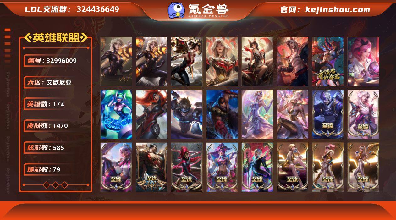 t39077【艾欧尼亚】签名版联盟不朽卡莎 殿堂传奇卡莎 联盟不朽阿狸签名版 殿堂传奇阿狸 金蛇巨星瑟提 1472皮肤 585炫彩 79臻彩 56神话/273限定/132传说/172英雄 账号等级:624 云顶神话:3 【重要头像】爱情之歌 觅心射手 心型钥匙 觅心游侠卢锡安 觅心之翼奎因 银河魔装机神安妮 大家伙 萨勒芬妮超级巨星 萨勒芬妮独立音乐人 玉剑传说苍鸾炫彩 魔女伊芙琳炫彩 魔女伊芙琳 魔女丽桑卓炫彩 魔女卡蜜尔炫彩 魔女艾希 魔女阿狸 KDA卡莎BAEST KDA卡莎 KDA阿卡丽 KDA阿卡丽炫彩 KDA阿狸 KDA阿狸炫彩 KDA伊芙琳 KDA伊芙琳炫彩 KDA萨勒芬妮 小启 星守卡莎 星守卡莎炫彩 幻灵战斗队长厄运小姐 星守金克丝炫彩 灵魂莲华辛德拉炫彩 灵魂莲华厄斐琉斯 魔女乐芙兰炫彩 魔女乐芙兰 北极星神黛安娜 北极星神黛安娜炫彩 幻灵战队猫金克丝 剪纸仙灵希维尔 剪纸仙灵希维尔炫彩 披萨鸡 西部魔影莎弥拉炫彩 福运魄罗 战斗学院伊泽瑞尔神话炫彩 西部天使赛娜神话炫彩 至臻剪纸仙灵希维尔 至臻太空律动娜美 至臻海珀利安小队迦娜 至臻星之守护者辛德拉 至臻魅惑女巫莫甘娜 至臻魔女乐芙兰 至臻战斗学院蕾欧娜 至臻KDA卡莎 西部魔影卢锡安炫...