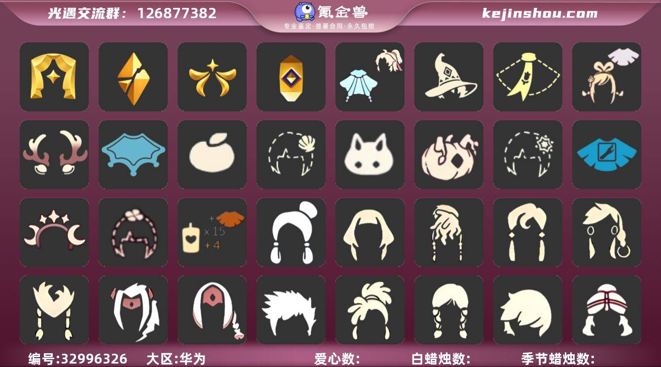 区服:华为服登入方式:手机蜡烛数量:4爱心:17当前身高2.584最高身高1.475最矮身高13.475已经毕业地图:霞谷已经毕业季节:追忆季,欧若拉季,破晓季,表演季'半梦想季'半集结季'半王子季'半风行季'稀有礼包:星月头冠,圣诞鹿角,巫师帽,绊爱套装,贝壳,雪花发卡,玉兔,大桔大利,四叶草头饰,tgc,创始人礼包,小王子围巾,暖冬瑞雪,冥龙南瓜'青衫落拓礼包热门物品:蝴蝶结,公主头,正太头,樱花头,猫猫头,搓澡巾,武士裤,白棉裤,背带裤,花环头饰,宴会围巾,虚荣发型,红耳机,红狐狸面具,花瓣斗篷,灯泡斗篷,红金斗篷,白金斗篷,白鸟斗篷,吉他,高音钢琴,笛子