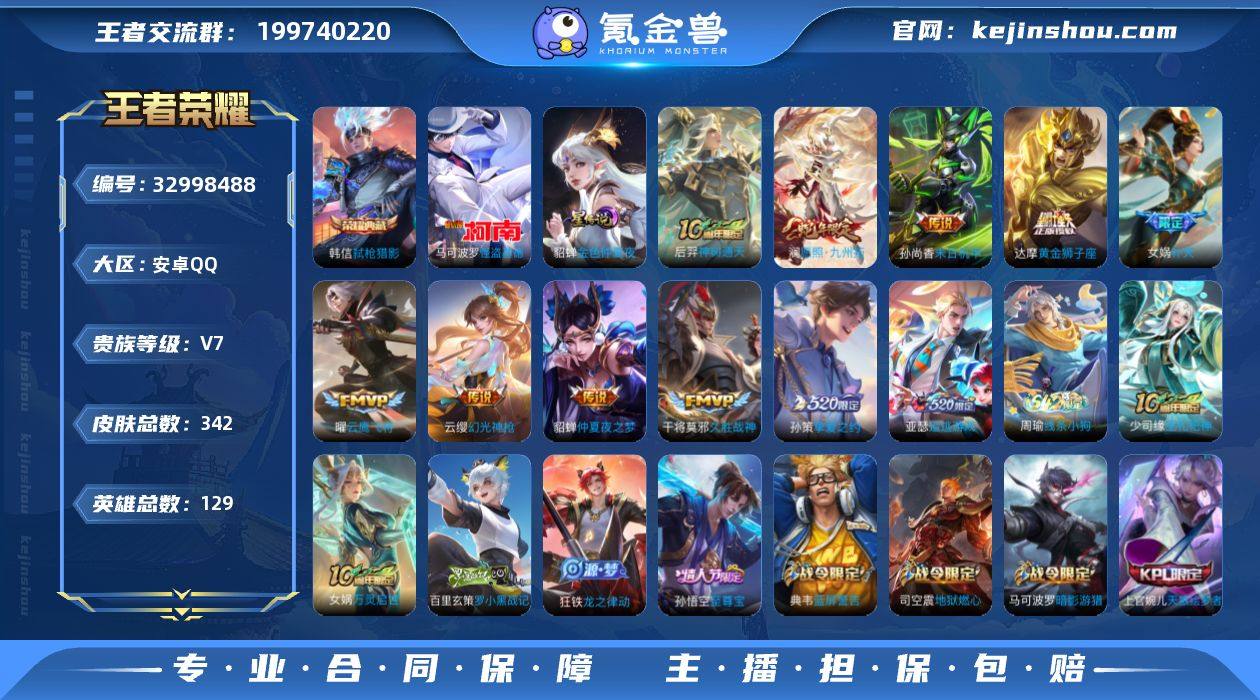 CHC30444,1星元,8按键,安卓Q-V7-最强王者段位-128英雄-342皮肤-1典藏皮肤-1珍品传说-11传说-103史诗 【英雄全皮】:孙权全皮,狂铁全皮,影全皮 【荣耀典藏】:韩信弑枪猎影 【珍品传说】:马可波罗怪盗基德 【传说皮肤】:后羿神树通天,澜愿照九州拓,云缨幻光神枪,亚瑟追逃游戏,孙策挚爱之约,女娲补天,曜云鹰飞将,干将莫邪久胜战神,达摩黄金狮子座,貂蝉仲夏夜之梦,孙尚香末日机甲 【限定皮肤】:白起狰,狄仁杰阴阳师,赵云皇家上将,墨子神迹守卫,孙尚香蔷薇恋人,鲁班七号狮舞东方,庄周高山流水,高渐离死亡摇滚,钟无艳超时空战士,扁鹊奇幻香踪,白起夜都怪侠,芈月重明,芈月幻夜卜梦,周瑜赤莲之焰,元歌云间偶戏,夏侯惇朔风刀,甄姬游园惊梦,甄姬落雪兰心,曹操烛龙,典韦穷奇,典韦蓝屏警告,马可波罗暗影游猎,狄仁杰魔术师,狄仁杰万华元夜,达摩星际陆战队,达摩沙漠行僧,项羽海滩派对,老夫子醍醐杖,老夫子航海奇遇记,程咬金演武夺筹,韩信飞衡,王昭君午后时光,兰陵王驯魔猎人,兰陵王金庭之子,亚瑟潮玩骑士王,亚瑟追逃游戏,孙悟空至尊宝,牛魔御旌,后羿圣弓游侠,李元芳银河之约,李元芳匿光侦查者,李元芳云中旅人,钟馗神迹守卫,...