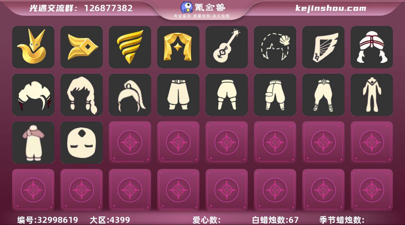 账号类型: 手机账号 季节已毕业: 小王子季,风行季,潜海季,表演季 完成地图: 全图毕业 礼包: 吉他,贝壳,竖琴 裤子: 武士裤,背带裤,白棉裤,搓澡巾,灯笼裤,连体裤 面具: 矮人面具 发型: 总裁发型,高马尾,公主头,书虫
