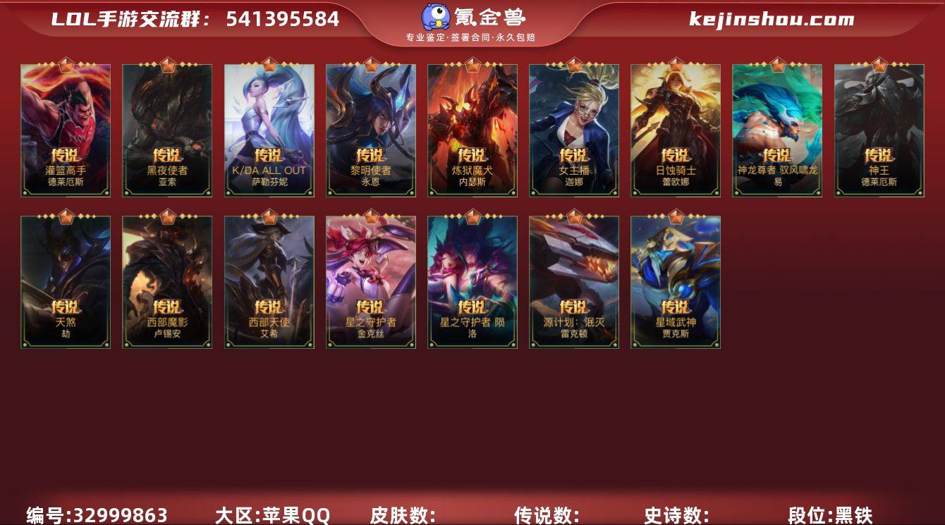 [18191065]1神话 4限定 18传说 57史诗 134皮肤 可二次 可修改实名 【段位】黄金 【神话皮】天命豪侠 瑟提 【限定皮肤】赵云子龙,水晶玫瑰琴女,关羽云长,山海绘卷剑魔 【传说皮】神龙尊者 驭风啸龙,西部天使寒冰,西部魔影卢锡安,天煞劫,神王诺手,日蚀骑士蕾欧娜,女主播风女,炼狱魔犬,K/DA ALLOUT萨勒芬妮,黑夜使者亚索,灌篮高手,星之守护者金克丝,源计划:泯灭,星域武神贾克斯,黎明使者永恩,源计划:联合,源计划:净化,星之守护者 陨