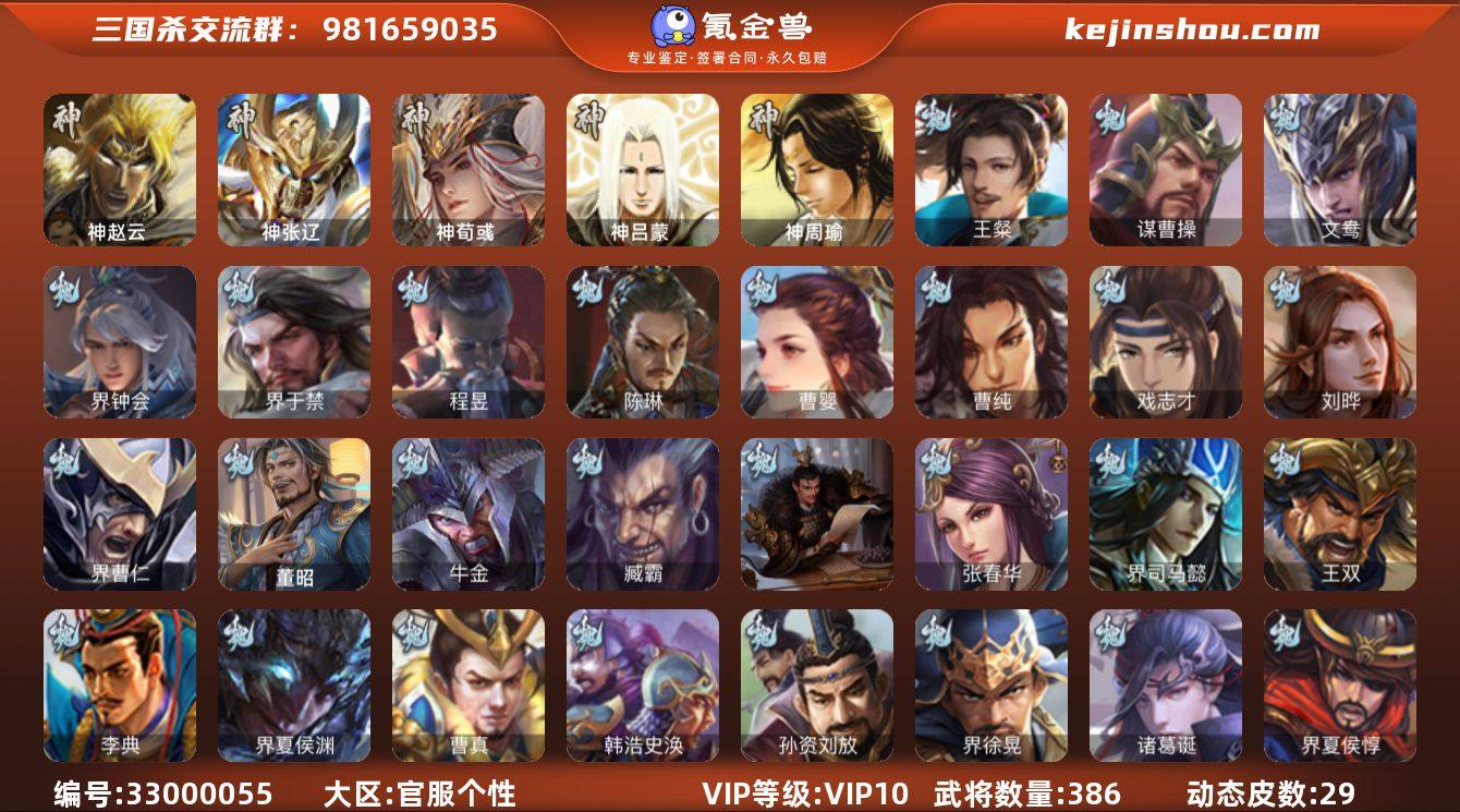 神赵云,神张辽,神荀彧,王粲,谋曹操,界钟会,界于禁,陈琳,曹婴,曹纯,戏志才,刘晔,程昱,马云騄,谋马超,诸葛瞻,赵襄,张星彩,王平,沙摩柯,界黄忠,花鬘,吴景,界朱然,贺齐,文鸯,谋孙尚香,左慈,郑玄,王允,陶谦,麹义,南华老仙,沮授,界左慈,公孙康,杜预,卑弥呼,兀突骨,司马昭,神吕蒙,神周瑜,SP关羽,SP曹仁,SP蔡文姬,乐进,曹昂,诸葛诞,朱灵,文聘,SP姜维,张春华,钟会,曹冲,郭淮,满宠,界王异,界曹操,界司马懿,界夏侯惇,界张辽,界许褚,界郭嘉,李典,曹真,韩浩史涣,陈群,曹叡,曹休,钟繇,司马朗,王基,李通,郭皇后,孙资刘放,辛宪英,界甄姬,吕虔,鲁芝,蒯越蒯良,界典韦,界荀彧,界徐晃,杜畿,界曹丕,毌丘俭,界邓艾,张恭,界曹植,界曹彰,界满宠,界郭淮,卞夫人,界陈群,华歆,袁涣,王双,崔琰,阮慧,谋徐晃,谋于禁,牛金,界夏侯渊,界曹仁,臧霸,唐咨,董昭,SP孙尚香,关银屏,夏侯霸,马良,关兴张苞,廖化,界马岱,关平,简雍,刘封,界法正,界关兴张苞,界刘备,界关羽,界张飞,界赵云,界马超,SP徐庶,吴懿,周仓,张松,刘谌,夏侯氏,...