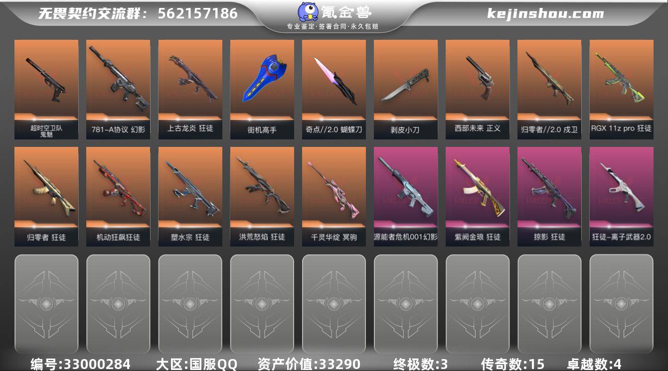【自带包赔 可赔三倍】:库存价值 33290 手感库存高性价比账号 多热门ak 【近战】: 剥皮小刀, 街机高手, 奇点//2.0 蝴蝶刀 【狂徒】: RGX 11z Pro 狂徒, 洪荒怒焰 狂徒, 离子武器//2.0 狂徒, 紫阙金琅 狂徒, 归零者 狂徒, 掠影 狂徒, 上古龙炎 狂徒, 塑水宗 狂徒, 机动狂飙 狂徒 【幻影】: 源能者危机001 幻影, 781-A协议 幻影 【冥驹】: 千灵华绽 冥驹 【正义】: 西部未来 正义 【戍卫】: 归零者//2.0 戍卫 【鬼魅】: 超时空卫队 鬼魅 【概要】: 总皮肤 79 终极3 传奇15 卓越4 刀皮3 英雄20 LV203 历史最高:铂金 当前段位:铂金 已使用 1195 R点 剩余 155 R点 卡面、挂饰、其他皮肤请看截图 道具、段位等以实际验号为准。如账号因没有维护,赛季更新等不可抗因素发生变化,不属于账号质量问题"