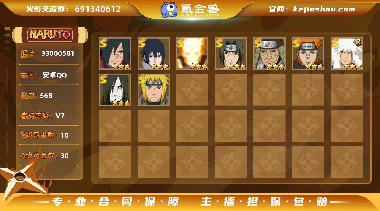 [18074998]V7 10S忍 30A忍 14通灵 568.8W战力 可二次 可修改实名 【S级忍者】宇智波佐助「永恒万花筒」,漩涡鸣人 「九喇嘛连结」,自来也 「舞之豪杰」,旗木卡卡西「须佐能乎」,宇智波斑「秽土转生」,猿飞日斩「秽土转生」,宇智波鼬 「须佐能乎」,佩恩「天道」,波风水门,大蛇丸