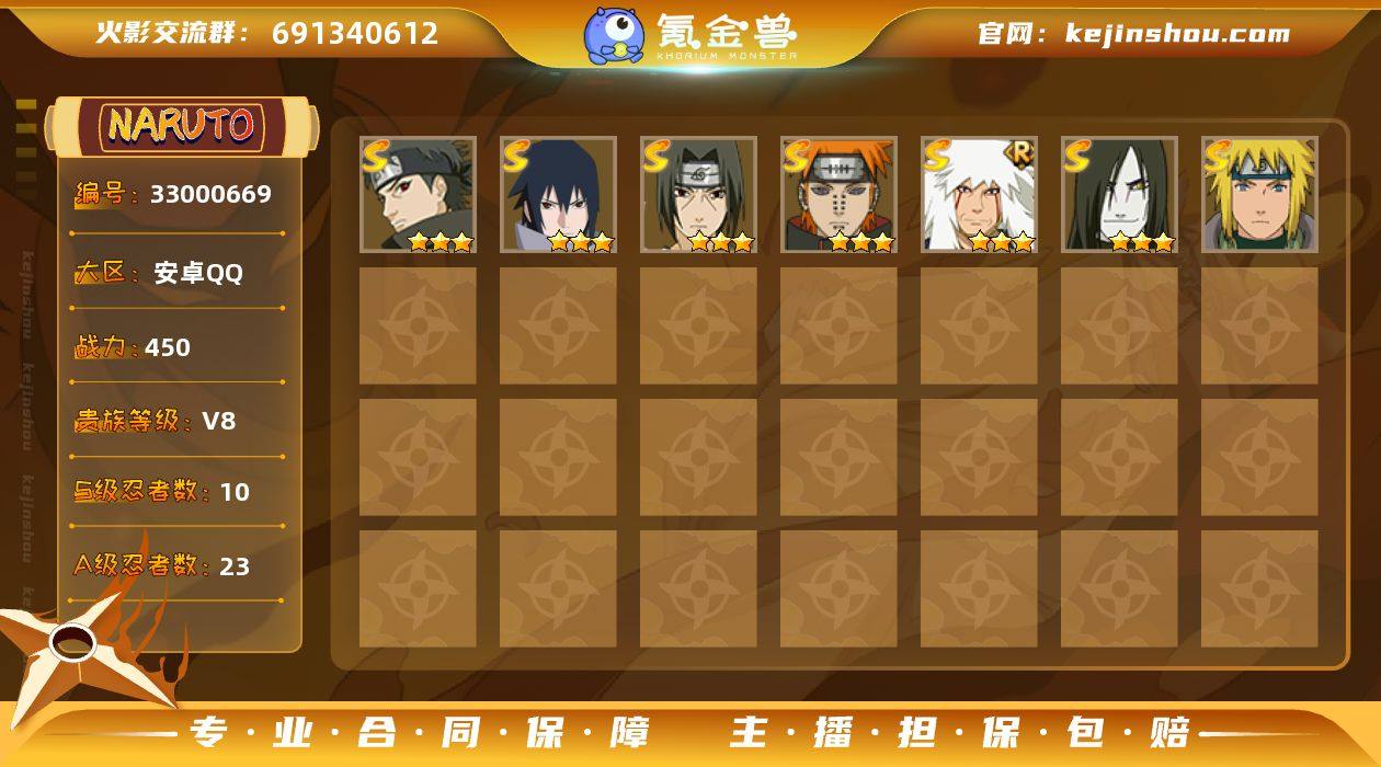 [18037243]V8 10S忍 23A忍 14通灵 450.5W战力 可二次 可修改实名 【S级忍者】宇智波止水「须佐能乎」,宇智波佐助「永恒万花筒」,自来也 「舞之豪杰」,旗木卡卡西「须佐能乎」,烈斗「初代目风影」,漩涡鸣人·宇智波佐助,宇智波鼬 「须佐能乎」,佩恩「天道」,波风水门,大蛇丸