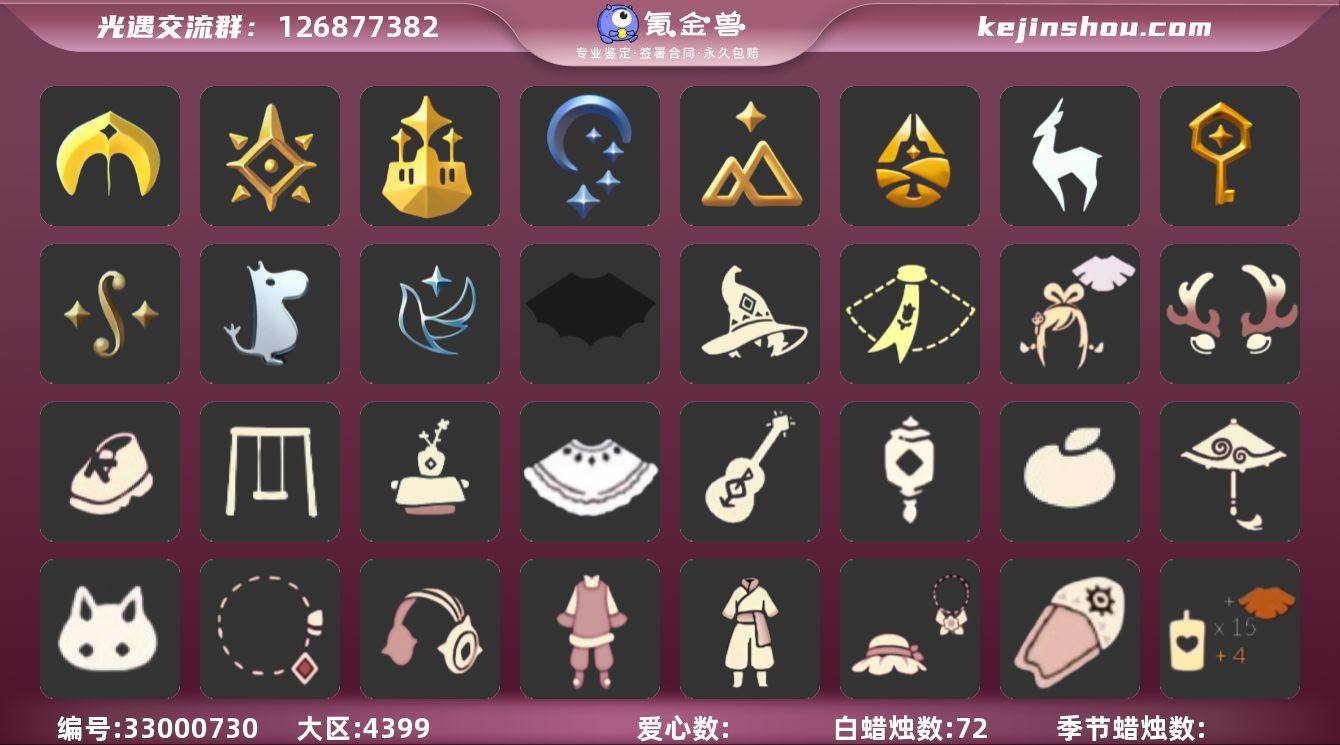 [18236826]华为 手机账号 3珍稀物品 13毕业季 5毕业图 72蜡烛 【珍稀物品】阿努比斯(狗头),彩虹围巾(五塑彩带斗),鳐鲲斗篷 【季节已毕业】青鸟季,迁徙季,双星季,圣岛季,预言季,梦想季,夜行季,拾光季,归巢季,九色鹿(九色鹿季),筑巢季,二重奏季,姆明季 【完成地图】晨岛,云野,雨林,霞谷,墓土(暮土) 【礼包】运动鞋(跃动跑鞋),新年裤(瑞气服饰),暗彩装扮(彩虹武士裤),姆明饰品套装(姆明尾巴),向日葵套(夏日有友礼包),巫师(巫师帽),绊爱(绊爱斗篷)(绊爱礼包),橘子(大橘大利),兔子(玉兔头饰)(玉兔发饰)(兔子发饰),彩虹耳钉(彩虹耳饰),彩虹耳机,日光耳环,鹿角(圣诞鹿角),创始人(创始人斗篷),围巾(小王子斗篷)(小王子围巾),蝙蝠套(蝙蝠斗篷)(南瓜头),白绒金(白雪斗篷),吉他(音韵吉他)(白吉他),红伞(瑞气纸伞),灯笼(中秋灯笼),秋千(情人秋千),茶桌(花憩茶桌),滑板(冲浪滑板)(冲浪板) 【裤子】筑巢季·裤子(设计师长袍),青鸟尊贵蓬头裤子(蓝色燕尾服),飞天裤(柔缎花边连)(九色鹿丝带裤),妮妮裙子(妮妮长裙),武士裤,背带裤,搓澡巾 【面具】夜行毕业面具(棕熊面具),阿努比斯,凤凰面具 【面饰】黑框眼镜(粗框眼镜),青鸟毕业面饰(青鸟面饰),红耳机 【发型】飞天盘发(九色鹿丸子头),虚荣,归...