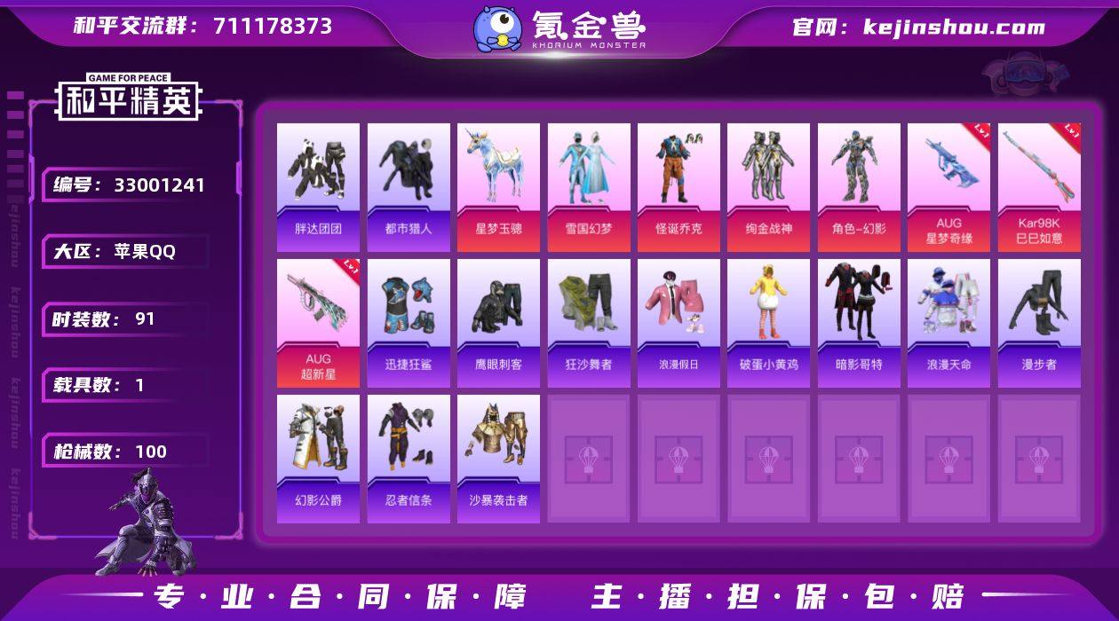 YZJ14234-可二次 苹果Q-不可转区【极品大手子主播同款身法穿搭!!!特权卡三百天 地铁满天赋 3钻苏尔南 满级星梦奇缘AUG!冰雪公主 小丑[怪诞] 木乃伊 都市 权威小番茄 新火箭少女 绚金战神 LED发光眼罩 六号稻草人 阳光菠萝 青蛙服 团团 红眼罩 浪漫天命 有改名卡】4稀有1载具6粉装5特效枪11热门91套装100枪皮 32885热力值 2印记 历史绝世王牌14星 【4稀有】 木乃伊 AKM-缤纷海域 都市猎人 浪漫天命 【1载具】 星梦玉骢 【6粉装】 梦幻火箭 雪国幻梦 怪诞乔克 幻影战神 放客神游 绚金战神 【5特效枪】 AKS-74U-森灵之息 (5级) Kar98K-巳巳如意 (5级) DP-28-豹影疾电 (5级) AUG-星梦奇缘 (9级) AUG-超新星 (1级) 【11热门】 六号稻草人 浪漫假日 红熊茄茄 鹰眼刺客 迅捷狂鲨 胖达团团 暗影哥特 忍者信条 狂沙舞者 漫步者 破蛋小黄鸡 【4头盔】 梦幻火箭头盔 雪国精灵头盔 幻影战神头盔 深海小丑鱼头盔 【4背包】 梦幻火箭背包 雪国精灵背包 甜心宝贝背包 幻影战神背包 营地ID:983488738