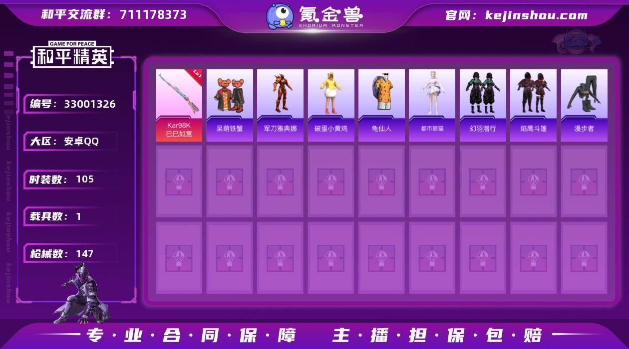 YZJ15610-可二次 安卓Q-1载具6粉装4特效枪6热门105套装147枪皮 42399热力值 精品小女号 樱桃泡泡 旋转彩虹 咏叹调 雪月幻音 星之彼岸 童真绒兔 海盐绵绵冰 保时捷 9印记 历史传奇王牌12星 【1载具】 保时捷Panamera(星辰紫) 【6粉装】 雪月幻音 樱桃泡泡 星穹咏叹调 青空秋雨 星之彼岸 旋转彩虹 【4特效枪】 Kar98K-巳巳如意 (5级) DP-28-豹影疾电 (5级) Mk14-福马献瑞 (5级) UMP45-萌骑冒险 (5级) 【6热门】 龟仙人 呆萌铁蟹 漫步者 破蛋小黄鸡 极速红龙 军刀雅典娜 【1飞行器】 齐天大圣飞行器 【1头盔】 幻影战神头盔 营地ID:925299582