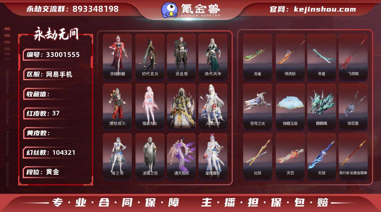 WJ5778,网易手机,5月2日可换绑,1谪星,37红773金,等级425,收藏值604194,三人段位黄金5,幻丝104321,金砖244,通行证Lv.1,声望1,凶虎,彩俑娃娃,剪纸彩刀,神君印,神乌造像,炎烈珠,谪星沧澜绡,2孔,2黄,红色神品,绝代风华,夜魅游莹,通天狐袄,星辉魔纱,执明神君,守墨麒,逐光者,化生明王,戎金狼,赤皓新囍,初代玄女,狱炎烬甲,熛怒炼火,樱云天女,人偶之梦,海之奇,凌霄之羽,天罚,苍穹之光,赤帝炎轮,麒麟魄,帝星,比羿,龙雀,狼主,悍虎斩,飞将戟,涯角,灵犀,如意金箍棒,天琼,锦鲤玉扇,狂龙,凤求凰,少阳剑,惊百里,灵狐幻刃,角色金色皮肤,禄运玉霄,紫微星命,龙吉公主,玉兔精,藏雨阁主,仲夏霜华,精武魂,星空投影,日道神子,高校水着,过江龙,无相印,山君怒,雷王锯,听涛,妖刀,千钧羽,断月影,麒麟牙,劫涛潮,判官笔,仙舞,寻魂,马首刀,腾云歌,千堆雪,天威,天之刑,破重云,
