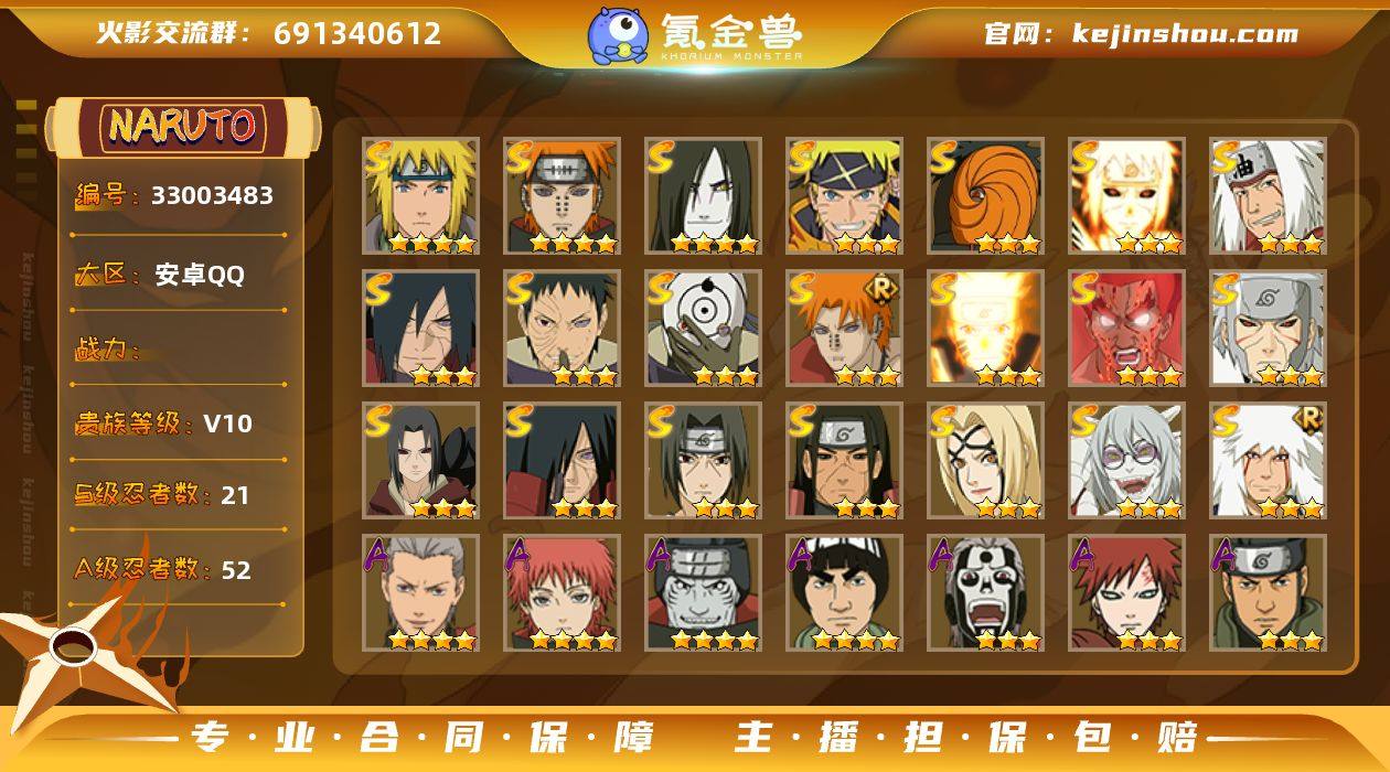 V10-21S级忍者数-52A级忍者数 【S级忍者】:千手扉间「秽土转生」(3星),千手柱间「秽土转生」(3星),宇智波鼬「秽土转生」(3星),宇智波斑「秽土转生」(3星),宇智波斑「秽土转生·解」(3星),宇智波带土「忍界大战」(3星),宇智波鼬「须佐能乎」(3星),自来也「舞之豪杰」(3星),大蛇丸(4星),自来也「传说中的三忍」(3星),纲手「百豪」(3星),波风水门(4星),药师兜「仙人模式」(3星),漩涡鸣人「九喇嘛连结」(3星),迈特凯「死门」(3星),佩恩「天道」(4星),佩恩·天道「超」(3星),宇智波斑 「白面具」(3星宇智波斑「白面具」),波风水门「九喇嘛连结」(3星),宇智波斑「五影会谈」(3星),漩涡鸣人·宇智波佐助(3星) 【A级忍者】:艾「青年」(2星),长门「青年」(2星),波风水门「青年」(2星),波风水门「新春限定」(2星),达鲁伊「博人传」(2星),迪达拉(2星),迪达拉「秽土转生」(2星),大蛇丸「晓」(2星),奇拉比(2星),奇拉比「忍界大战」(2星),飞段(4星),飞段「死司凭血」(3星),干柿鬼鲛(4星),漩涡博人「桃式显现」(2星),漩涡鸣人「仙人模式」(2星),漩涡鸣人「九尾查克拉」(2星),机械鸣人「初始形态」(2星),迈特凯(4星),旗木卡卡西「忍界大战」(2星),旗木...