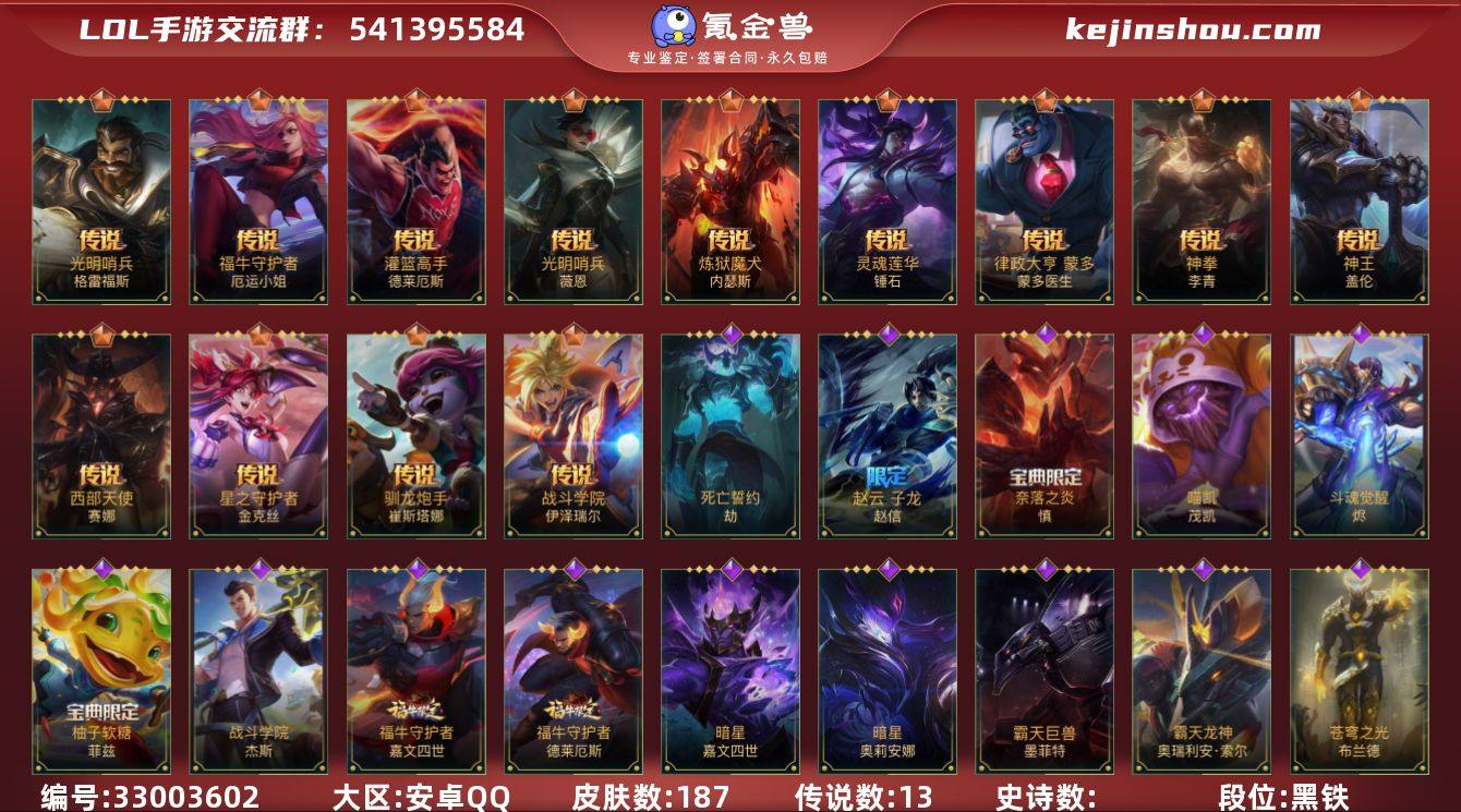 【LOLSYH408】135英雄/187皮肤/1神话/13传说/流光翡翠/乘龙破渊 李青/赵云子龙/关羽云长/神王盖伦/光明哨兵薇恩/星之守护者金克丝/驯龙炮手/神拳盲僧/律政大亨/炼狱魔犬/福牛守护者女枪/灌篮高手/光明哨兵格雷福斯/战斗学院ez/西部天使赛娜/灵魂莲华锤石/钢铁军团/腥红之月剑魔/星之守护者拉克丝/战斗学院拉克丝/星域先知(可升级)/地狱行者猴子/探梦奇旅艾克/暗星发条/腥红之月皎月/无限烈焰/恶魔之刃/赵云 子龙/清剿小队金克丝/猛虎布隆/腥红之月烬/斗魂觉醒 烬/霸天龙神龙王/K/DA ALL OUT卡莎/K/DA ALL OUT寡妇/猎龙勇士潘森/铁血女忍/K/DA ALL OUT阿卡丽/源计划:火/福牛守护者剑姬/福牛守护者安妮/K/DA ALL OUT阿狸/死亡誓约劫/武神/屠龙勇士凯尔/源计划:雷/未来战士卢锡安/源计划:山/小恶魔/小蜜蜂提莫/驯龙女巫/银河魔装机神龙女/秘旅探索者龙女/炼狱魔女/源代码青钢影/暗星皇子/福牛守护者皇子/泳池派对盲僧/地下拳王/柯基/奈落之炎/梦境绅探 凯南/盗梦者/破败军团女枪/西部魔影诺手/福牛守护者诺手/泳池派对男枪/禁卫机甲/绝命机甲男枪/喵凯 茂凯/福牛守护者牛头/霸天巨兽石头人/暗星墨菲特/灵魂莲华 奈德丽/虚空海灵/欧米伽小队 鬼影蛙人/柚子软糖/玉剑传说 武剑...