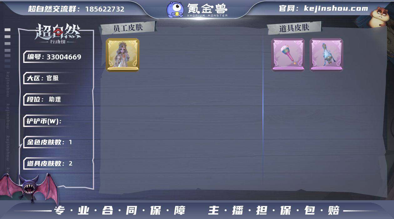 ZR913 红色皮肤数量:0 粉色皮肤数量:0 金色皮肤数量:1 紫色皮肤数量:0 道具皮肤数量:2 外观:圣光之谕 道具:云端梦想计划 青玉抱丹 饰品:嘻嘻头套 面具马头套 烛光纪念 呆滞头套 鱼头怪头套 哈士奇头套 萨卡班甲鱼头套 卑微头套 烈焰红唇头套 滑稽头套 后室幸存者头套 动作:举牌 抬手 员工:爱丽丝 零 薇薇安 巫铃儿 小黄 逍遥 艾伦 累充:12元 铲铲币:398000 金砖:10 段位:助理 魔盒等级:1 备注:巨人官方账号(唯一渠道) 官方截图