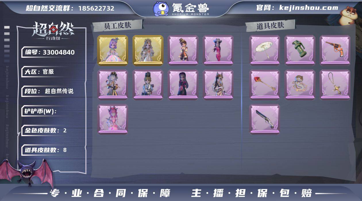 ZR915 金色皮肤数量:2 紫色皮肤数量:7 道具皮肤数量:8 红色皮肤数量:0 粉色皮肤数量:0 外观:遗失的童话 圣光之谕 白光莹 庆宴绮愿 丝缕哀歌 耀眼的你 王子与骑士 情公主 除妖小师妹 道具:郁金春信 祝祷词 圣心之泪 星光的裁决 新星时代 小狗蛇点点鞭 金戈玄铜 蔷薇物语 饰品:烈焰红唇头套 卑微头套 萨卡班甲鱼头套 呆滞头套 咬咬鲨头套 面具马头套 嘻嘻头套 炙热烧烤 大葱明头套 小狗蛇点点头套 煤球喵头套 烛光纪念 蒜了八 芝麻糊汤圆 火爆了头套 滑稽头套 太空鲨头套 哈士奇头套 樱桃奶油布丁 鱼头怪头套 像素朋克墨镜 后室幸存者头套 未竟乐园 毛球夹子 动作:新年摇 舞台中心 DL摇 鸳鸯戏 luvaboy 要糖 举牌 律动迪斯科 抬手 工牌背景:卷珠帘 圣光之誓 花蕾城堡 雷霆轩 蓝海奇遇 鸢尾花 点点萌伴 心同野鹤 甜心的囚笼 粉嫩小海狸 工牌动作:轻躯鹤立 员工:兰 薇薇安 爱德华 小黄 艾伦 莉莉 逍遥 小满 临云 零 爱丽丝 巫铃儿 阿念 累充:580元 铲铲币:13913000 金砖:6 段位:超自然传说 魔盒等级:80 账号类型:巨人官方账号(唯一渠道) 截图:官方截图
