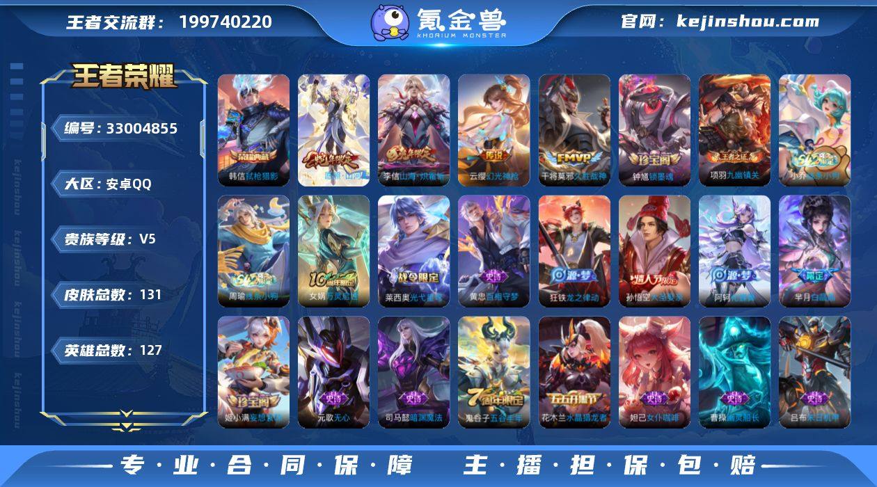【WZYH1111】贵族5/皮肤131/典藏1/传说4/史诗36/英雄127/孙权全皮/敖隐全皮/弑枪猎影/愿照·山河定/幻光神枪/山海·炽霜斩/久胜战神/天穹之誓(s36)/阴阳师/皇家上将/白晶晶/无心/沙漠行僧(s26)/海滩派对/大圣娶亲/云中旅人(s29)/五谷丰年/大漠名商(s28)/擒涛扼浪(s31)/探海日志(s32)/海盐诗旅(s30)/古海寻踪(s33)/百解令(蒙犽)/鬼谷子天穹祈灯(S34)/妄想食味/剑破天穹(s35)/熔金海岸/谧流熔炉/虚灵犬护/逆浪荇歌/荣光之誓/九幽镇关/光弋星穹/往忆晖光/线条小狗-周瑜/线条小狗-小乔/钟馗锁墨魂/万灵启世/百相守梦-黄忠/龙之律动/化蝶舞/暗渊魔法/鹰眼统帅/猫狗日记-孙策/天才门将/特工魅影/心灵骇客/冰冠公主/心灵战警/暗隐猎兽者/德古拉伯爵/水晶猎龙者/乱世虎臣/末日机甲-吕布/千年之狐/幽灵船长/圣诞狂欢/金属风暴/女仆咖啡/摇滚巨星/水果甜心/偶像歌手/兰陵王雾影缉谜/班班快跑/溯影追猎/极光幻客/鹤鸣心笺/径山谋武/踏浪烽翎/锦麟游梦/云械蓝图/死霸装/小满鸭/命运加冕/灵野札记/玫蓝誓约/灵卦秘语/雪境奇遇-西施/魅影绮裳/苍林狼骑/暗都幽影/功夫炙烤/决胜大满贯/破局者/西部游侠/潮玩探月行/乓乓大师/特工战影/归虚梦演-蒙犽/野性能量/丁香结/敏锐之力/功夫老勺/龙腾万里/...