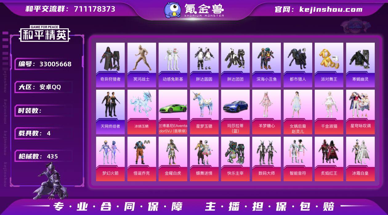 蝎 都市 金鞋 天网 赵灵儿 怪诞 新101 3级AUG星梦 暗夜之虎 国宝头 粉熊包 满地铁天赋】c29133-【可二次】【因赛季更新游戏段付以上号为准!】 安卓Q-12稀有4载具20粉装22特效枪43热门349套装435枪皮 22印记 历史无敌战神 【12稀有】 木乃伊 奇异狩猎者 巡查衣 寒蝎幽灵 M416-黄金龙骨 AWM-黄金龙骨 M416-星际漫游 都市猎人 浪漫天命 派对舞王 天网终结者 派对舞王(金靴子) 【4载具】 玛莎拉蒂蓝色 兰博SVJ绿色 冰绡玉鳞 星梦玉骢 【20粉装】 梦幻火箭 蝶舞迷情 赵灵儿 千金淑猫 炫光之旅 金曜白虎 星穹咏叹调 怪诞乔克 羊梦糖心 幻影战神 烬夜之誓 智能音符 莲影清波 快乐主宰 数码大师 第五大道 冰霜白皇 炙焰红王 音爆索尼克 流星咚咚 【22特效枪】 M416-五爪金龙 (7级) SCAR-L-锦绣绵绵 (5级) P90-魔童闹海敖丙 (3级) AKM-炫紫旋律 (7级) AKS-74U-信仰神谕 (5级) Kar98K-巳巳如意 (5级) MG-36-沧焰双生 (5级) DP-28-豹影疾电 (5级) AUG-许七安 (1级) AUG-星梦奇缘 (3级) GROZA-旋星之夜 (4级) Mk14-甜梦熊击 (5级) Mk14-爆裂游戏 (4级) GROZA-镜光银凌 (5级) SCAR-L-童趣迷兔 (6级) M249-绝对恒星 (3级) MG3-洛神天依 (5级) Mk14-福马献瑞 (5级) ACE32-萌骑漫游 (5...