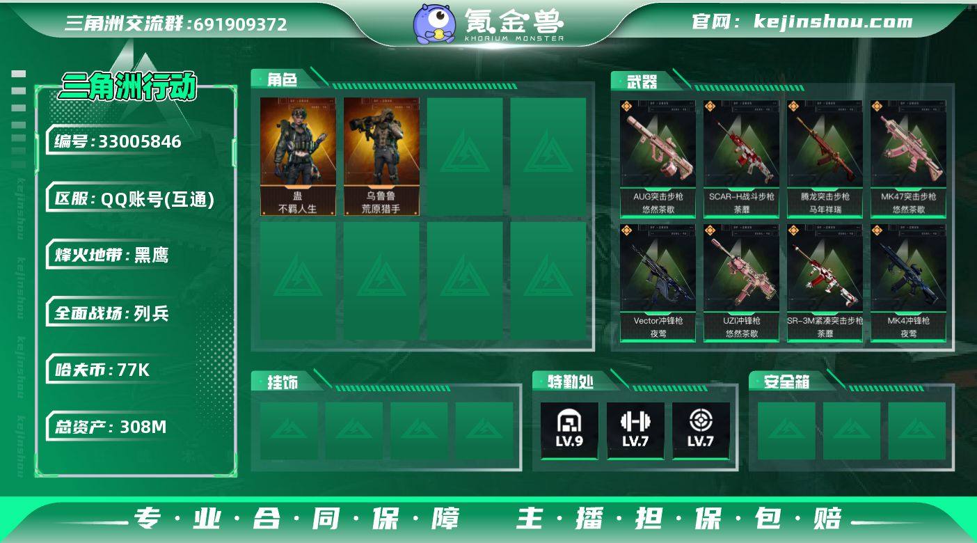 A12020/可二次/QQ区【总资产:308M+80发aw+近战处刑者+S8赛季3X2+部门全3+仓库9+体力负重满+非洲之心+咖啡豆】/烽火等级:60级/全面战场:9级/纯币:77K/三角券加币:218(三角币15+三角券203)【近战-处刑者】乌鲁鲁-荒原猎手/蛊-不羁人生/部门:33333/特勤等级(技术中心3级/工作台3级/制药台3级/防具台3级/仓库9级/指挥中心6级/训练中心7级/靶场7级/潜水中心2级/收藏室3级)K416突击步枪-行动记录/AUG突击步枪-悠然茶歇/MK47突击步枪-悠然茶歇/Vector冲锋枪-夜莺/MK4冲锋枪-夜莺/PKM通用机枪-茶蘼/S8通行证/段位:黑鹰(流动资产:149.3M)/详细看图