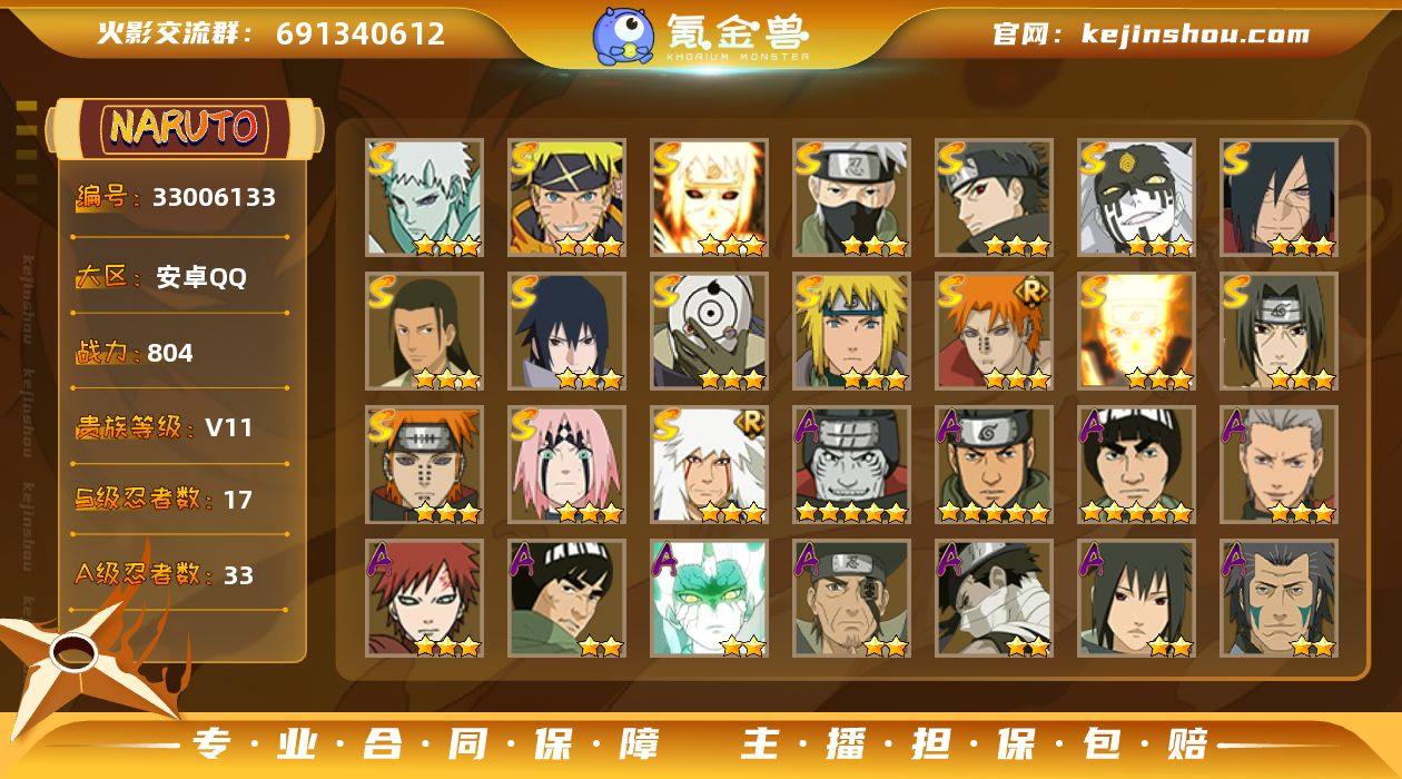 【HYYH1372】V11/战力804W/S忍17/A忍33/三星S-波风水门「九喇嘛连结」/三星S-宇智波带土「十尾人柱力」/二星A-飞段「死司凭血」/五星A-猿飞阿斯玛/三星S-旗木卡卡西「须佐能乎」/二星A-药师兜「侠隐江湖」/2星小南「神驹佑将」/二星A-照美冥「五代目水影」/五星A-迈特凯/三星S-千手柱间·木叶创立/2星旗木卡卡西「神威对决」/三星S-大筒木桃式/二星A-长十郎「六代目水影」/二星A-桃地再不斩「秽土转生」/三星S-宇智波斑「白面具」/二星A-黑土「四代目土影」/三星S-佩恩·天道「超」/三星S-春野樱 「忍界大战」/二星A-迪达拉/二星A-不动/二星A-日向宁次·忍界大战/三星S-宇智波佐助「永恒万花筒」/二星A-长门「青年」/三星A-飞段/二星A-蝎/三星S-佩恩「天道」/三星S-漩涡鸣人·宇智波佐助/三星S-波风水门/三星S-漩涡鸣人 「九喇嘛连结」/二星A-秋道丁次「忍界大战」/二星A-漩涡博人「桃式显现」/三星A-我爱罗「疾风传」/二星A-李洛克「忍界大战」/二星A-土台「忍界大战」/二星A-波风水门 「青年」/三星S-自来也「舞之豪杰」/二星A-千手扉间「漂泊武士」/三星S-宇智波止水「须佐能乎」/二星A-日向雏田 「最终章」/二星A-不风/二星A-宇智波鼬 「夏日限定」/二星A-宇智波泉奈/二星A-巳...