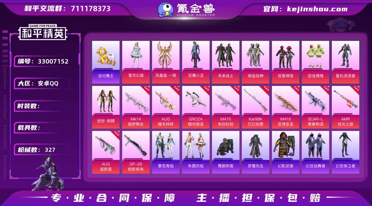 【4个战神框 金鞋 放客 暗夜之虎 国宝头 粉熊包 满地铁天赋】c29086-【可二次】【因赛季更新游戏段付以上号为准!】 安卓Q-2稀有10粉装17特效枪26热门227套装327枪皮 16印记 历史无敌战神 【2稀有】 派对舞王 派对舞王(金靴子) 【11粉装】 凤凰座一辉 狂魇小丑 小舞恋语 雪月幻音 创世救赎 放客神游 未来战士 绚金战神 恐龙拽拽 复仇流浪者 谜鸦审判 【18特效枪】 M416-电玩时刻 (5级) AKS-74U-森灵之息 (5级) Kar98K-巳巳如意 (5级) DP-28-豹影疾电 (5级) AUG-暖羊咩咩 (5级) AUG-超新星 (7级) GROZA-旋星之夜 (2级) Mk14-甜梦熊击 (5级) AMR-炫光之旅 (7级) GROZA-镜光银凌 (5级) M416-至情至圣 (7级) Mk14-福马献瑞 (5级) ACE32-萌骑漫游 (3级) 燃烧瓶-天降桃花 (6级) 破片手榴弹-招财进宝 (5级) 烟雾弹-好运连连 (3级) SCAR-L-青春物语 (7级) P90-诸神-破晓(4级) 【26热门】 小丑鱼 龟仙人 暗夜之虎 雪山精英 梦魇先生 鹰眼刺客 暗夜之虎 暗夜契约 团圆交子 瑞龙福将 粉红小猪 豚鼠丹丹 忍者信条 漫步者 青龙圣者 机械英豪 破蛋小黄鸡 风华少年志 白月香洋装 黑色刀锋 极速红龙 英勇保护者 弄潮海豚 M762-瑞龙福将 S686-奇异狩猎者 Kar98K-古堡领主 【1飞行器】...