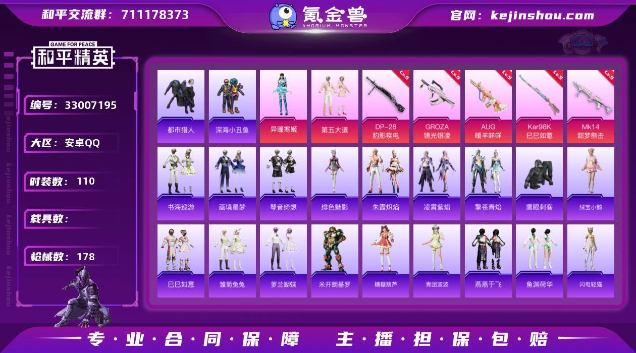 安卓 手Q-2粉装-8特效枪-0载具-2粉色飞行器-46561热力值-7王牌印记-110套装-178枪皮 【热门品类】:套装-都市猎人,套装-深海小丑鱼 【粉色套装】:粉装-第五大道,角色-异瞳寒姬 【粉色枪皮等级】:GROZA-镜光银凌(五级),AUG-暖羊咩咩(五级),ACE32-萌骑漫游(五级),AKS-74U-森灵之息(五级),Kar98K-巳巳如意(五级),Mk14-甜梦熊击(五级),Mk14-福马献瑞(五级),DP-28-豹影疾电(五级) 【粉色枪皮】:GROZA-镜光银凌,AUG-暖羊咩咩,ACE32-萌骑漫游,AKS-74U-森灵之息,Kar98K-巳巳如意,Mk14-甜梦熊击,Mk14-福马献瑞,DP-28-豹影疾电 【粉色飞行器】:炫彩糖果飞行器,极意拳锋飞行器 【粉色降落伞】:镜光幻境降落伞,雪月幻音降落伞,星穹咏叹调降落伞,幻彩电音降落伞,绯穹魔姬降落伞,炫彩糖果降落伞,虎痴许褚降落伞 【稀有套装】:套装-绒宝小鹅,套装-巳巳如意,套装-雪国风尚,套装-炫彩糖果,套装-马上有钱,套装-迅捷龙虾,套装-雏菊兔兔,套装-萝兰蝴蝶,角色-米开朗基罗,套装-糖糖葫芦,套装-青团波波,套装-燕燕于飞,套装-鱼渊荷华,套装-闪电轻猫,套装-紫幽梦,套装-蓝冰羽,套装-星影赞美诗,套装-星渊小夜曲,套装-彩虹兔,套装-云朵鹅,套装-雪绒豹,...