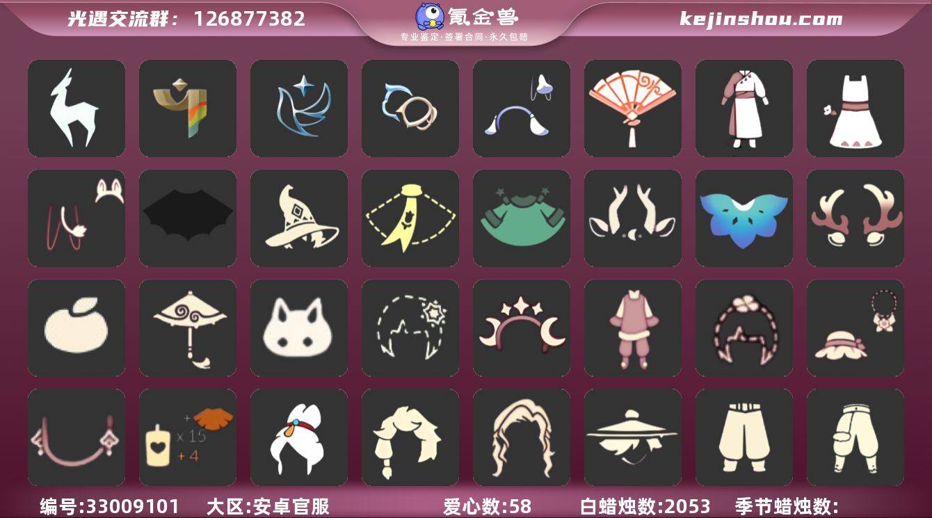 账号类型: 手机账号 季节已毕业: 九色鹿季,彩染季,青鸟季,双星季 礼包: 蝙蝠套,巫师,围巾,星球斗,九色鹿角,莲花斗,鹿角,橘子,红伞,兔子,雪花,星月头饰,新年裤,四叶草,向日葵套,新年耳钉,创始人,姆明饰品套装,向日葵连衣裙,龙鳞束身长袍,献瑞折扇礼包,活力海牛礼包 裤子: 武士裤,搓澡巾,击剑裤 面具: 辉光羚羊面具 面饰: 红耳机,青鸟毕业面饰 项链: 围巾 发型: 若笠,虚荣,单侧绑发,飞天盘发 头饰: 平顶帽 斗篷: 海洋斗,绿芽,领主红斗篷,彩染围巾斗篷,青鸟毕业斗篷 配饰: 雨伞,姆明抱枕,小红伞 亮点: 【优质装备】:若笠(箬笠),武士裤,姆明抱枕,小红伞(姆明红伞)(姆明大伞),九色鹿(九色鹿季),围巾(肩带),单侧绑发(单边小辫),领主红斗篷(暗红斗篷),辉光羚羊面具,彩染季,飞天盘发(九色鹿丸子头),青鸟季,青鸟毕业面饰(青鸟面饰),青鸟毕业斗篷(青鸟斗篷),双星季,蝙蝠套(蝙蝠斗篷)(南瓜头),星球斗(星球夹克),莲花斗(异彩莲花斗篷),红耳机,围巾(小王子斗篷)(小王子围巾),九色鹿角(神鹿祝福头饰)(神鹿祝福礼包),鹿角(圣诞鹿角),红伞(瑞气纸伞),姆明饰品套装(姆明尾巴),巫师(巫师帽),新年裤(瑞气服饰),向日葵套(夏日有友礼包),龙鳞束身长袍,活力海牛礼包,向日葵连衣裙(连衣裙),星月头饰(...