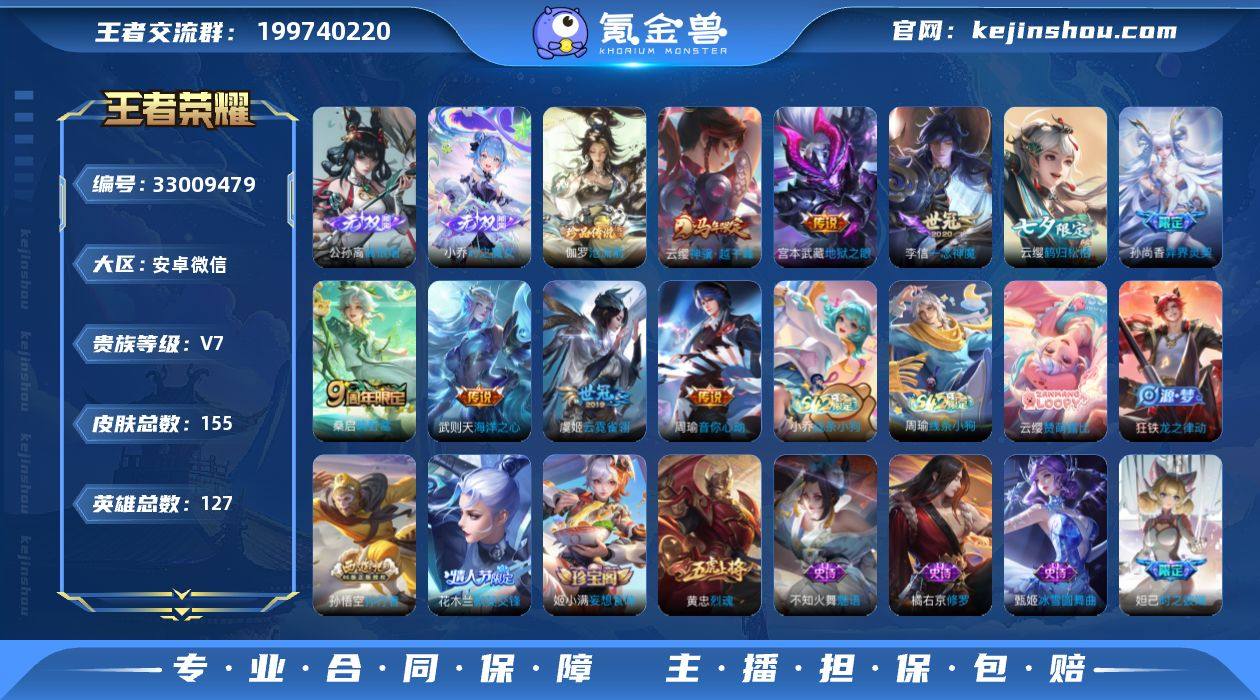 普通社交限制【精品推荐·武则天·离恨烟·时之魔女·沧流箭·云缨神骥越千峰·云缨鹤归松栖·孙尚香异界灵契·一念神魔·可二次】YXw20587-安卓WX-127英雄-155皮肤-4王者印记-110铭文-贵族积分4w【贵族7】【1典藏·2无双·1珍品·9传说·1天幕·9按键】【因赛季更新游戏段付以上号为准!】 【荣耀典藏】:武则天英雄 【无双皮肤】:公孙离离恨烟,小乔时之魔女 【珍品传说】:伽罗沧流箭 【天幕】:共赏芳华天幕 【传说皮肤】:云缨神骥越千峰,桑启鸣野蒿,云缨鹤归松栖,孙尚香异界灵契,周瑜音你心动,李信一念神魔,虞姬云霓雀翎,宫本武藏地狱之眼,武则天海洋之心 【限定皮肤】:公孙离离恨烟,大乔绒语心约,姜子牙天穹之誓,狄仁杰阴阳师,赵云皇家上将,妲己时之彼端,孙尚香异界灵契,白起夜都怪侠,狄仁杰魔术师,达摩沙漠行僧,项羽海滩派对,兰陵王金庭之子,花木兰默契交锋,孙悟空孙行者,李元芳云中旅人,钟馗驱傩正仪,蔡文姬奇迹圣诞,鬼谷子五谷丰年,黄忠烈魂,苏烈千军破阵,沈梦溪大漠名商,明世隐吟游魔法,裴擒虎擒涛扼浪,鲁班大师探海日志,桑启海盐诗旅,云缨鹤归松栖,张良古海寻踪,高渐离燃音魔法,妲己灵卜魔法,鬼谷子天穹祈灯,伽罗琥珀纪元,姬小满妄想食...