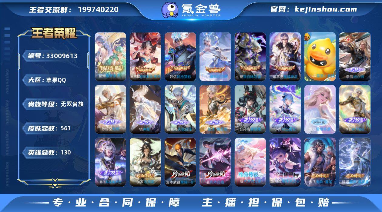 个人自玩号 无双v10 满英雄 九水晶包里多两个 小黄鸭小兵 全套幕夏 小国猴子1.3w战力46段打野 历史百星 六天幕 五星传多六千星币