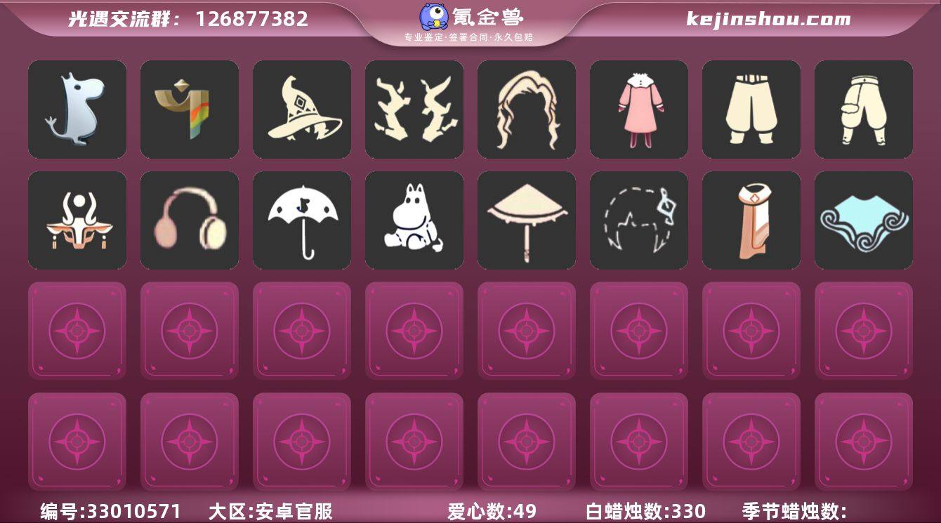 账号类型: 邮箱账号 季节已毕业: 姆明季,彩染季 完成地图: 霞谷 礼包: 巫师,枯角 裤子: 武士裤,搓澡巾,妮妮裙子 面具: 辉光羚羊面具 面饰: 红耳机 发型: 虚荣 头饰: 蓝色音乐会 斗篷: 海洋斗,彩染围巾斗篷 配饰: 雨伞,姆明抱枕,小红伞 亮点: 【优质装备】:武士裤,妮妮裙子(妮妮长裙),姆明抱枕,小红伞(姆明红伞)(姆明大伞),姆明季,辉光羚羊面具,彩染季,红耳机,巫师(巫师帽),枯角(巫树犄角),霞谷