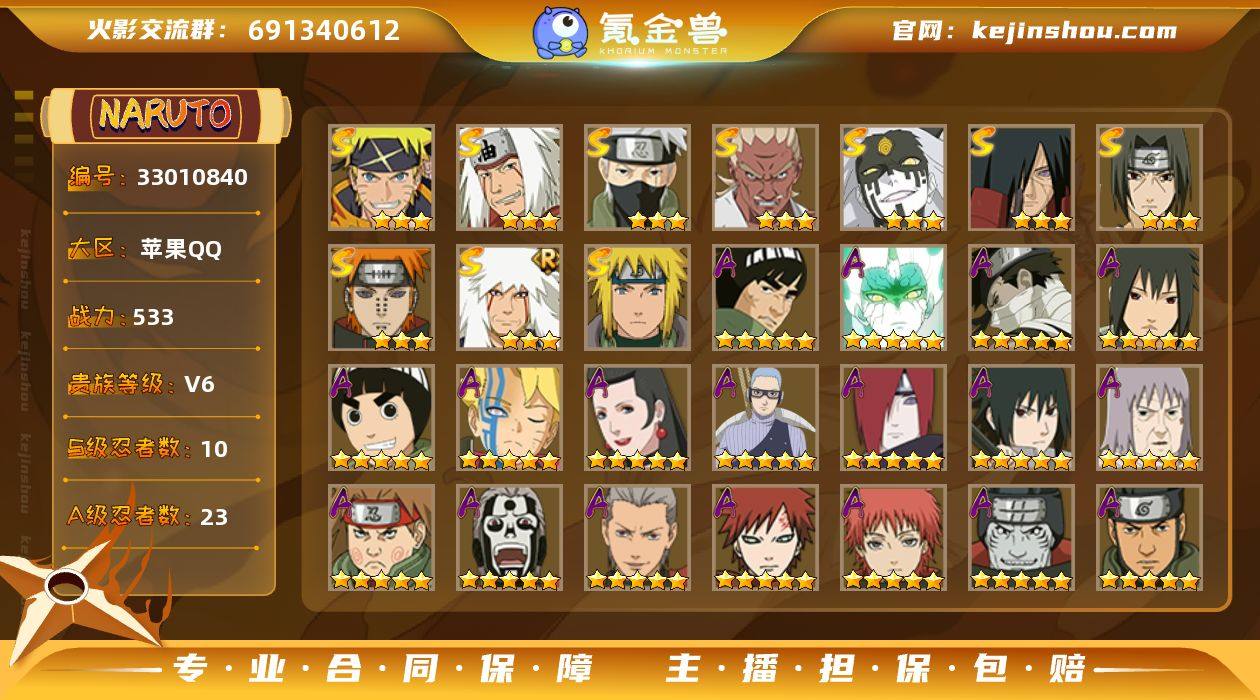 MHY4017【关注店家每日捡漏价100个】有二次【10S 23A 15通灵兽 V6】 苹果Q【区服】3073【等级】141【S级数量】10【A级数量】23【B级数量】40【C级数量】42【S级】佩恩「天道」 波风水门 艾「忍界大战」 自来也「舞之豪杰」 大筒木桃式 宇智波鼬「须佐能乎」 漩涡鸣人·宇智波佐助 宇智波斑「秽土转生·解」 自来也「传说中的三忍」 旗木卡卡西「须佐能乎」【A级】长十郎「六代目水影」 宇智波鼬「夏日限定」 不缘 迈特凯 宇智波泉奈 猿飞阿斯玛 干柿鬼鲛 飞段 李洛克「忍界大战」 飞段「死司凭血」 宇智波佐助「须佐能乎」 迈特凯「青春爆炸」 蝎 千代「近松十人卫」 漩涡博人「桃式显现」 长门「青年」 桃地再不斩「秽土转生」 巳月「仙人模式」 秋道丁次「忍界大战」 我爱罗「疾风传」 小南「神驹佑将」 波风水门「青年」 大野木「侠隐江湖」【B级】佩恩「饿鬼道」 御手洗红豆「新春限定」 奈良鹿丸「最终章」 李洛克「疾风传」 日向花火「武当宗师」 夕日红「冬日限定」 重吾「忍界大战」 漩涡鸣人「疾风传」 春野樱「忍者少女」 惠比寿 漩涡玖辛奈 旗木卡卡西「暗部」 漩涡鸣人「第一尾」 秋道丁次「疾风传」 木叶丸「疾风传」 手鞠「疾风传」 佩恩「修罗道」 山中井野「疾...