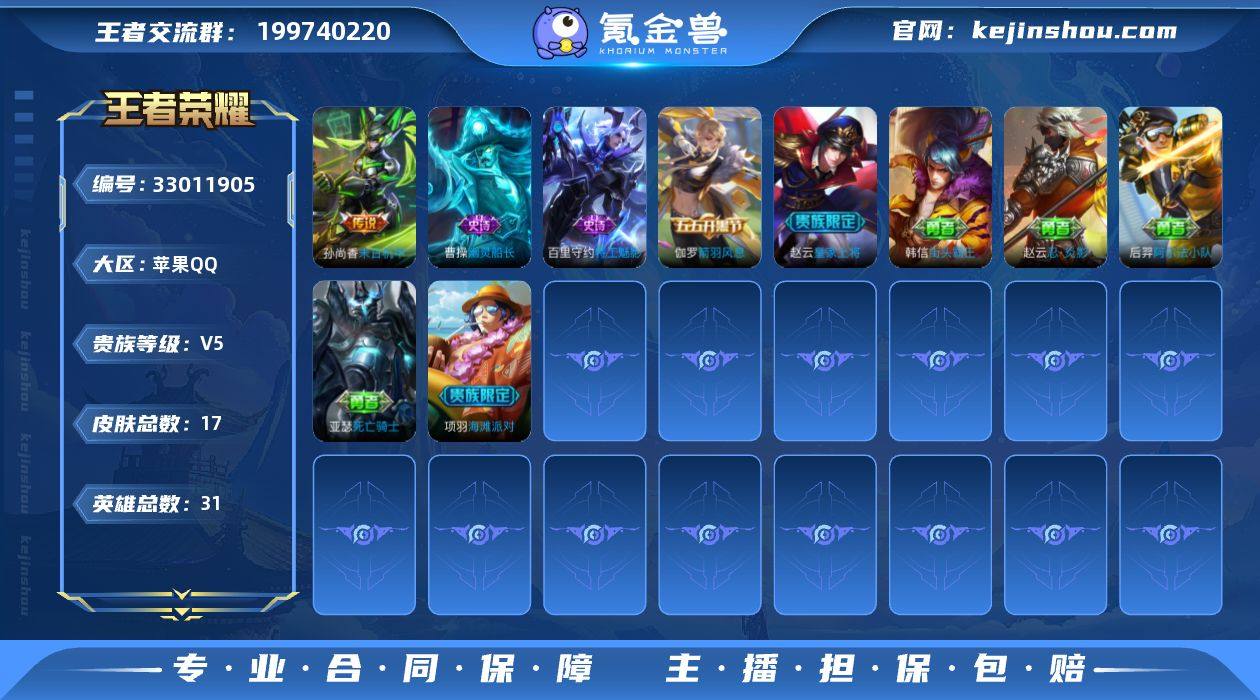 V5 1珍品 1传说 17皮肤 31英雄 【1珍品传说】【1传说】孙尚香-末日机甲【4史诗】百里守约-特工魅影,曹操-幽灵船长,伽罗-箭羽风息,赵云-皇家上将
