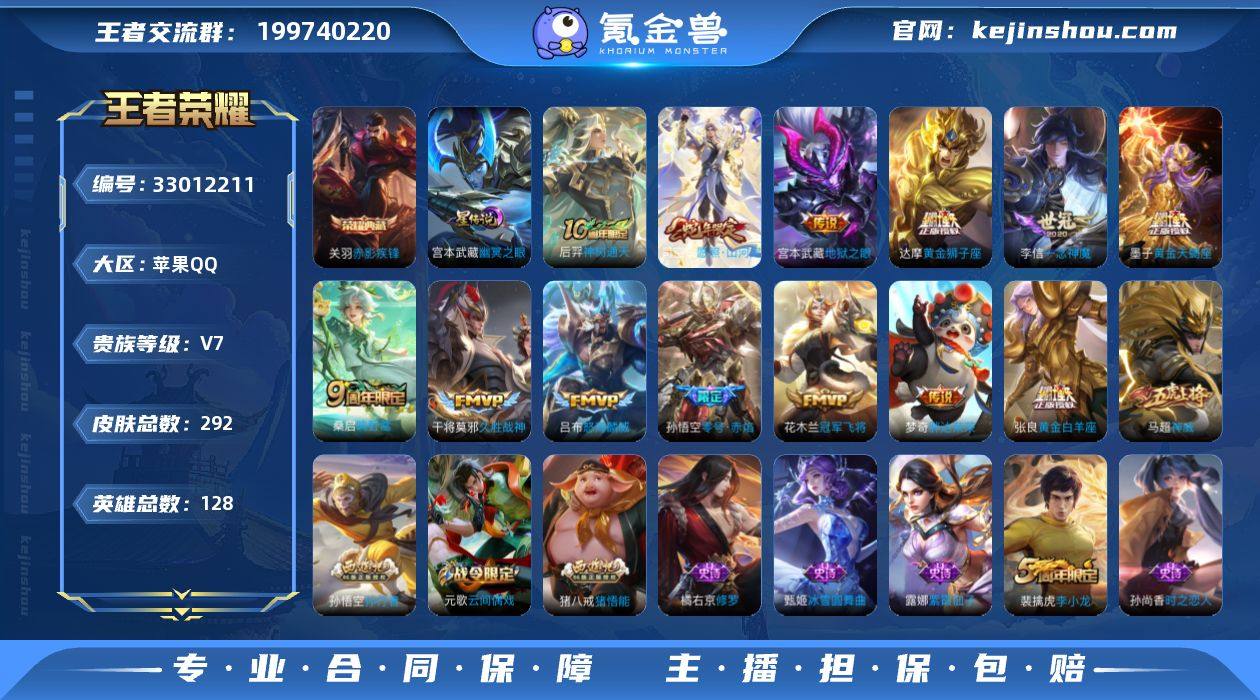 V7 1典藏 15传说 1星元 292皮肤 128英雄 【1水晶】关羽-赤影疾锋【15传说】达摩-黄金狮子座,干将莫邪-久胜战神,宫本武藏-地狱之眼,花木兰-冠军飞将,李信-一念神魔,梦奇-胖达荣荣,孙悟空-零号·赤焰,张良-黄金白羊座,吕布-怒海麟威,墨子-黄金天蝎座,桑启-鸣野蒿,司空震-愿照·山河定,后羿-神树通天【1星元】宫本武藏-幽冥之眼【51史诗】赵云-未来纪元,安琪拉-心灵骇客,白起-星夜王子,百里玄策-热力回旋,曹操-幽灵船长,嫦娥-拒霜思,妲己-女仆咖啡,妲己-魅力维加斯,大乔-猫狗日记,狄仁杰-魔术师,狄仁杰-鹰眼统帅,貂蝉-圣诞恋歌,伽罗-箭羽风息,宫本武藏-鬼剑武藏,韩信-白龙吟,花木兰-水晶猎龙者,橘右京-修罗,铠-曙光守护者,兰陵王-暗隐猎兽者,李元芳-逐浪之夏,刘禅-绅士熊喵,刘禅-天才门将,露娜-紫霞仙子,鲁班七号-乒乒小将,吕布-圣诞狂欢,吕布-末日机甲,马超-神威,米莱狄-胡桃异想国,墨子-金属风暴,裴擒虎-李小龙,孙策-猫狗日记,孙尚香-水果甜心,孙尚香-蔷薇恋人,孙尚香-时之恋人,孙悟空-孙行者,小乔-缤纷独角兽,雅典娜-冰冠公主,亚瑟-心灵战警,杨戬-天秀·启明,嬴政-摇滚巨星,嬴政-暗夜贵公子,元歌-云间偶戏,张飞-乱世虎臣,赵云-皇家上将,甄姬-冰雪圆舞曲,钟馗-乐园奇幻夜,猪八戒-...