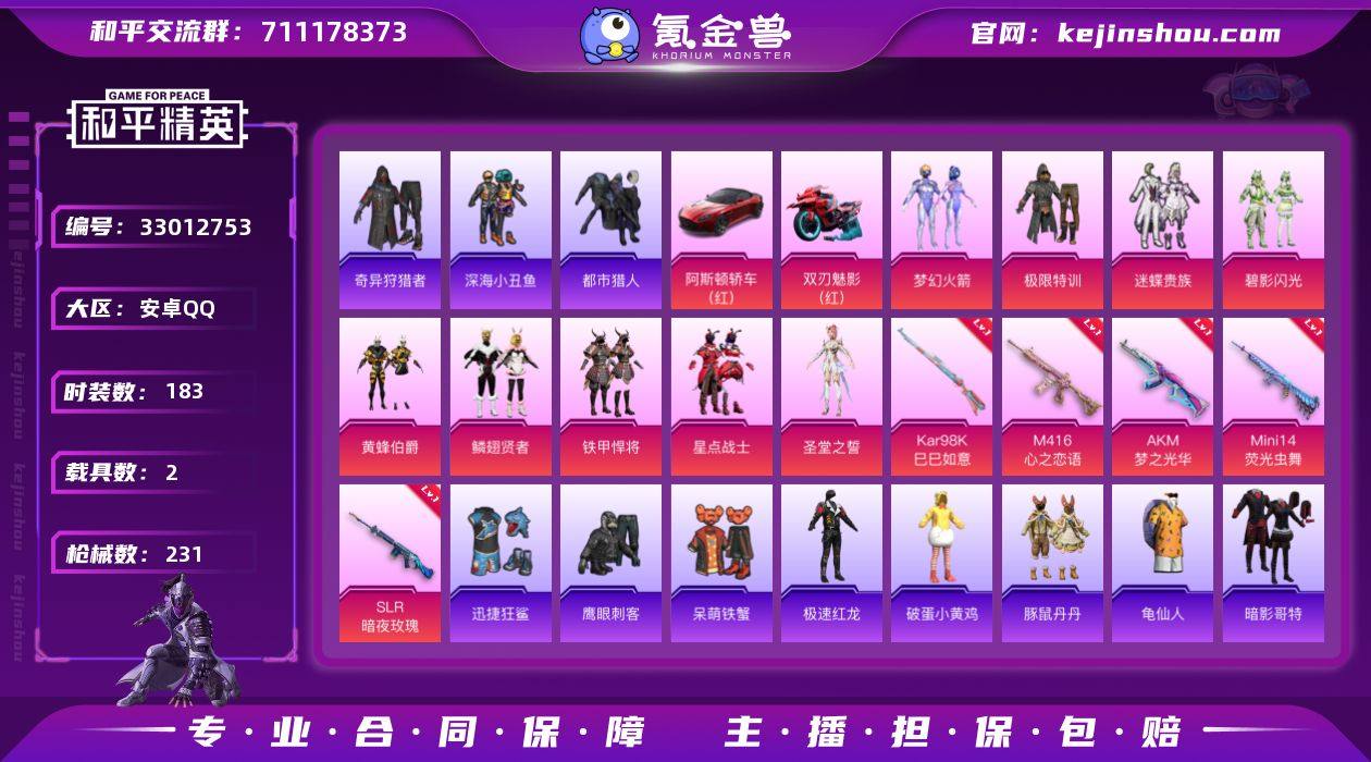 DYH18057【关注店家每日捡漏价100个】【男神素材身法号20高印记2载具-9粉装-5特效枪 梦幻火箭 极限特训 暗影哥特 奇异狩猎者,深海小丑鱼,浪漫天命,都市猎人,小丑鱼】无二次包人脸安卓手Q-2载具-9粉装-5特效枪-183套装-231枪皮-20王牌印记-荣耀皇冠Ⅳ-72596热力值【2载具】阿斯顿·马丁DBS(红),双人摩托-双刃魅影(红)【9粉装】鳞翅贤者,极限特训,角色-圣堂之誓,梦幻火箭,星点战士,迷蝶贵族,铁甲悍将,碧影闪光,黄蜂伯爵【5特效枪】M416-心之恋语[7级],AKM-梦之光华[7级],Kar98K-巳巳如意[5级],Mini14-荧光虫舞[4级],SLR-暗夜玫瑰[3级]【13稀有】暗影哥特,奇异狩猎者,深海小丑鱼,浪漫天命,都市猎人,小丑鱼,AKM-奇异狩猎者,AKM-百万伏特,S686-奇异狩猎者,M762-奇异狩猎者,AKM-缤纷海域,汤姆逊-奇异狩猎者,M24-奇异狩猎者【11飞行器】光之冒险尾迹,异域银装飞行器,红色滑翔尾迹,粉色滑翔尾迹,黄族统领飞行器,齐天大圣飞行器,炫彩糖果飞行器,极意拳锋飞行器,破刃行动尾迹,马上有福飞行器,空岛之星尾迹【4头盔】幻影战神头盔,深海小丑鱼头盔,梦幻火箭头盔,百万伏特头盔【2背包】百万伏特背包,深海小丑鱼背包【387其它衣服和枪皮】战术大师,青涩时光,豚鼠丹丹,甜蜜告白,炫彩糖果,呆萌铁...