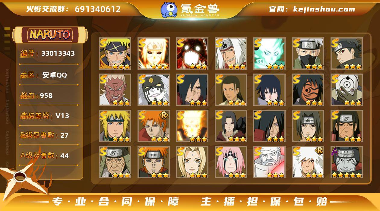【HYC1770】V13/战力958W/S忍27/A忍44/三星S-宇智波斑「秽土转生」/三星S-纲手/三星S-波风水门「九喇嘛连结」/二星A-飞段「死司凭血」/三星S-旗木卡卡西「须佐能乎」/二星A-猿飞日斩「火影继承人」/二星A-我爱罗 「新春限定」/三星S-猿飞日斩「秽土转生」/三星A-蝎/五星A-迈特凯/三星S-千手柱间·木叶创立/二星A-神秘面具男 「忍者之路」/三星S-大筒木桃式/二星A-长十郎「六代目水影」/二星A-蝎「绯流琥」/三星S-漩涡鸣人 「暴怒·第六尾」/二星A-桃地再不斩「秽土转生」/三星S-宇智波斑「白面具」/三星S-自来也 「传说中的三忍」/二星A-佩恩·六道「漂泊浪客」/二星A-黑土「四代目土影」/三星S-佩恩·天道「超」/二星A-神农 「羁绊」/三星S-春野樱 「忍界大战」/二星A-迪达拉/四星A-我爱罗「疾风传」/二星A-漩涡鸣人「九尾查克拉」/二星A-猿飞木叶丸「博人传」/二星A-照美冥「侠隐江湖」/二星A-日向宁次·忍界大战/二星A-宇智波带土「漂泊浪客」/二星A-宇智波鼬/三星S-宇智波佐助「永恒万花筒」/三星S-大筒木金式「博人传」/三星S-宇智波鼬「秽土转生」/二星A-长门「青年」/三星A-飞段/三星S-佩恩「天道」/三星S-漩涡鸣人·宇智波佐助/三星S-波风水门/三星S-大筒木舍人 「最终章」/...