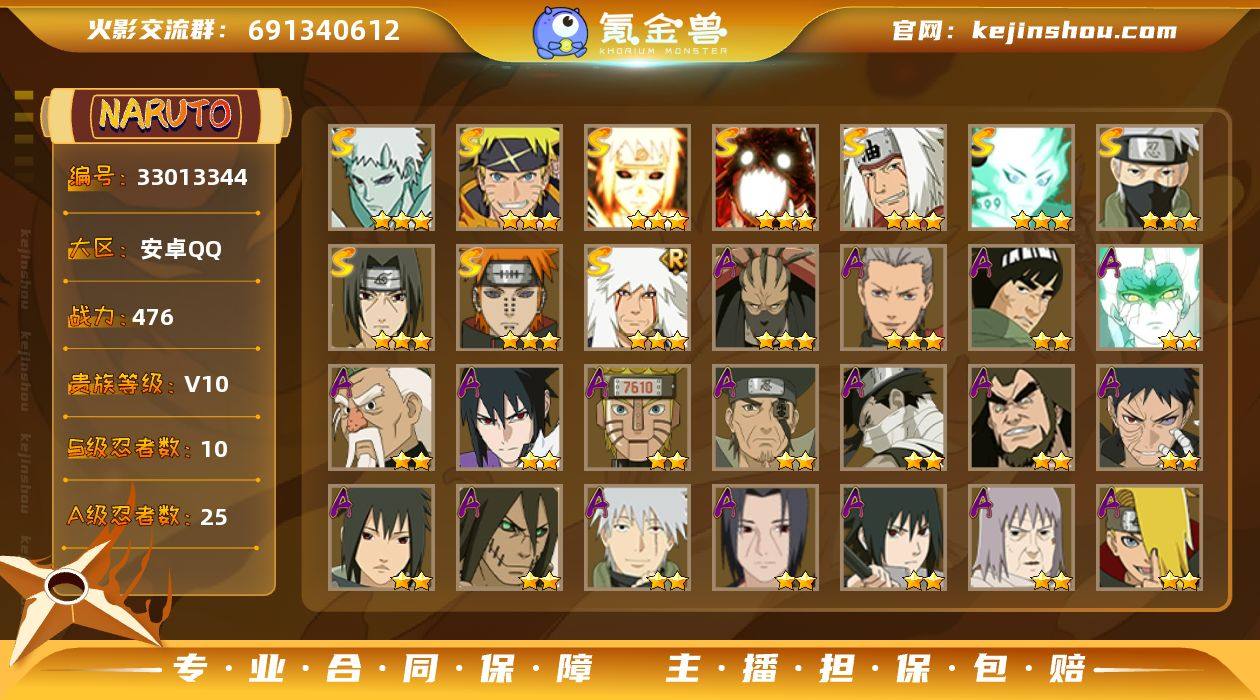 【2704】(可免费转苹果)V10,战力476W,10S级忍者数-25A级忍者数,170高招券,375点券,神驹斑70片,热门A忍侠隐佐助,夏日鼬,漂泊带土,侠隐大野木等,ME2271 【S级忍者】:宇智波鼬「须佐能乎」(3星),旗木卡卡西「须佐能乎」(3星),自来也「舞之豪杰」(3星),自来也「传说中的三忍」(3星),佩恩「天道」(3星),大筒木舍人「最终章」(3星),漩涡鸣人「暴怒·第六尾」(3星),波风水门「九喇嘛连结」(3星),漩涡鸣人·宇智波佐助(3星),宇智波带土「十尾人柱力」(3星) 【A级忍者】:迪达拉(2星),飞段(3星),干柿鬼鲛(2星),机械鸣人「初始形态」(2星),迈特凯(2星),旗木卡卡西「幻之真容」(2星),旗木卡卡西「神威对决」(2星),桃地再不斩「秽土转生」(2星),蝎(2星),蝎「绯流琥」(3星),小南「神驹佑将」(2星),角都「秽土转生」(2星),猿飞阿斯玛(2星),宇智波鼬(2星),宇智波鼬「夏日限定」(2星),宇智波佐助「须佐能乎」(2星),宇智波佐助「侠隐江湖」(2星),宇智波带土「漂泊浪客」(2星),千代「近松十人卫」(2星),神农「羁绊」(2星),土台「忍界大战」(2星),宇智波泉奈(2星),大野木「侠隐江湖」(2星),巳月「仙人模式」(2星),迈特凯「青春爆炸」(2星)