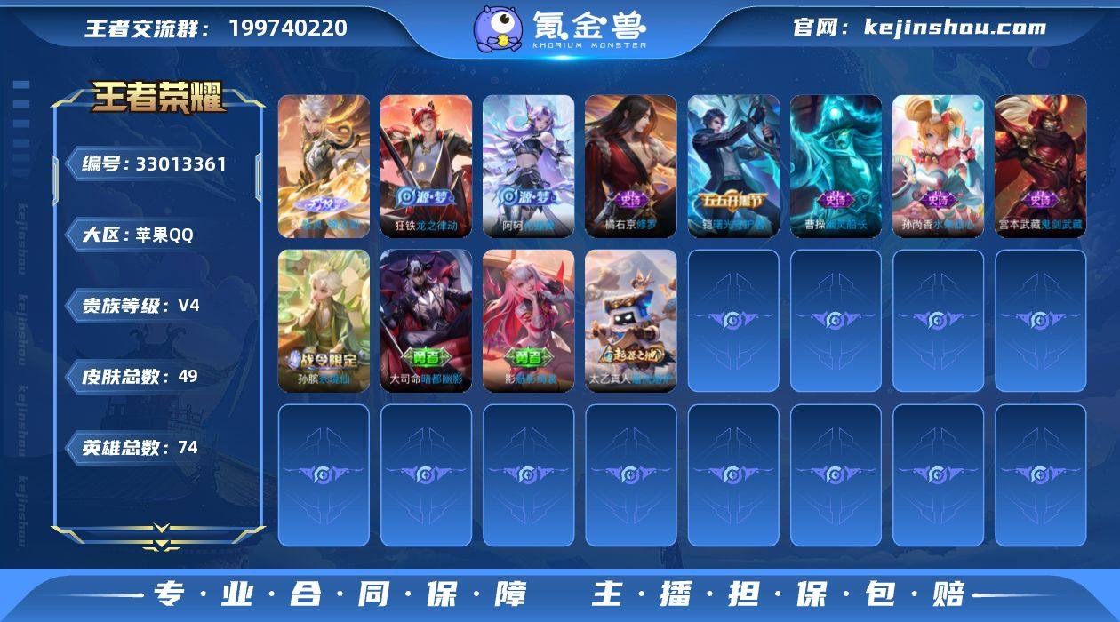 【精品小号·金标1.2W曜·器灵螭龙剑·无二次包过】w23088-苹果Q-74英雄-49皮肤-3王者印记-30铭文-贵族积分0w【贵族4】【1无双·1传说·2按键】【因赛季更新游戏段付以上号为准!】 【无双皮肤】:曜器灵螭龙剑 【传说皮肤】:曹操万灵伏威 【限定皮肤】:狄仁杰阴阳师,项羽海滩派对,米莱狄胡桃异想国 【赛季限定】:太乙真人谧流熔炉,钟馗虚灵犬护,甄姬逆浪荇歌,亚瑟荣光之誓 【战令限定】:米莱狄胡桃异想国,孙膑茶境仙,马超访茗客,莱西奥光弋星穹,明世隐往忆晖光,周瑜线条小狗 【史诗皮肤】:周瑜线条小狗,莱西奥光弋星穹,狂铁龙之律动,阿轲化蝶舞,孙膑茶境仙,米莱狄胡桃异想国,橘右京修罗,铠曙光守护者,曹操幽灵船长,孙尚香水果甜心,宫本武藏鬼剑武藏,露娜紫霞仙子 【其他皮肤】:蚩奼极光幻客,明世隐往忆晖光,亚瑟荣光之誓,哪吒罗小黑战记,甄姬逆浪荇歌,阿古朵布丁狗之约,张良灵野札记,苏烈春野闲踪,钟馗虚灵犬护,刘备浪漫序章,戈娅玫蓝誓约,明世隐景韶洛都,影魅影绮裳,马超访茗客,太乙真人谧流熔炉,大司命暗都幽影,廉颇无尽征程,狄仁杰阴阳师,宫本武藏万象初新,安琪拉玩偶对对碰,白起白色死神,项羽海滩派对,澜孤猎,马超幸存者,...