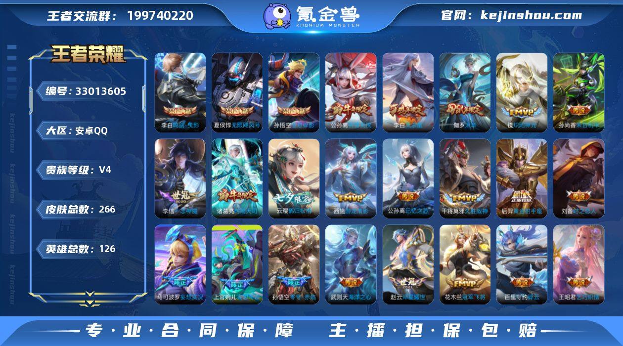 可二次【特价出售/店主推荐】安卓Q-V4-永恒钻石V段位-126英雄-266皮肤-3典藏皮肤-1典藏英雄-24传说-74史诗 【荣耀典藏】:武则天英雄,孙悟空全息碎影,夏侯惇无限飓风号,李白鸣剑曳影 【传说皮肤】:云缨鹤归松栖,上官婉儿妄想奇谈,马可波罗妄想实况,公孙离记忆之芯,花木兰燃星之曲,百里守约碎云,赵云淬星耀世,王昭君乞巧织情,西施游龙清影,公孙离祈雪灵祝,诸葛亮时雨天司,镜炽阳神光,虞姬启明星使,孙悟空零号赤焰,李信一念神魔,刘备时之恋人,伽罗太华,干将莫邪久胜战神,花木兰冠军飞将,后羿黄金射手座,李白凤求凰,孙尚香末日机甲,孙悟空地狱火,武则天海洋之心 【限定皮肤】:白起狰,暃埋骨钱,蔡文姬夏日便利店,大乔绒语心约,虞姬夏日便利店,姜子牙天穹之誓,狄仁杰阴阳师,虞姬凯尔特女王,赵云皇家上将,墨子神迹守卫,嬴政优雅恋人,庄周蜃楼王,孙膑妖精王,扁鹊炼金王,芈月重明,吕布御风骁将,周瑜赤莲之焰,元歌云间偶戏,夏侯惇朔风刀,曹操烛龙,曹操天狼征服者,典韦穷奇,典韦岱宗,马可波罗逐梦之星,马可波罗妄想实况,狄仁杰魔术师,狄仁杰万华元夜,达摩星际陆战队,达摩沙漠行僧,项羽海滩派对,项羽霸王别姬,老夫子醍醐杖,...