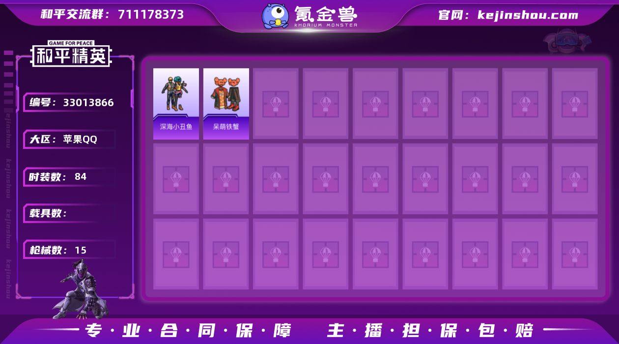 WMH540+【2特效枪 深海小丑鱼】苹果QQ-2特效枪-13套装-15枪皮-英勇黄金Ⅱ段位-3705热力值-营地号:1045169903【2特效枪】 Mk14-福马献瑞[3级] UMP45-萌骑冒险[3级]【13稀有】 红釉青花 雨过天青 福马献瑞 马上有钱 阳光菠萝 狙击之神 王牌教练 吉莉礼服 完美偶像 魅力单车 弄潮海豚 呆萌铁蟹 深海小丑鱼【2头盔】 虎痴许褚头盔(3级) 福马献瑞头盔(3级)【3背包】 荒原烈焰背包(3级) 福马献瑞背包(3级) 虎痴许褚背包(3级)【13其他枪皮】 VSS-虎痴许褚 AMR-雨过天青 PKM-雨过天青 SLR-乌木金纹 AA12-G-雨过天青 沙漠之鹰-雨过天青 M16A4-雨过天青 GROZA-福马献瑞 蜜獾-启元战纹 M416-糯团青竹 AUG-耀粉歌者 蜜獾-天降萌叽 UZI-幻影战神