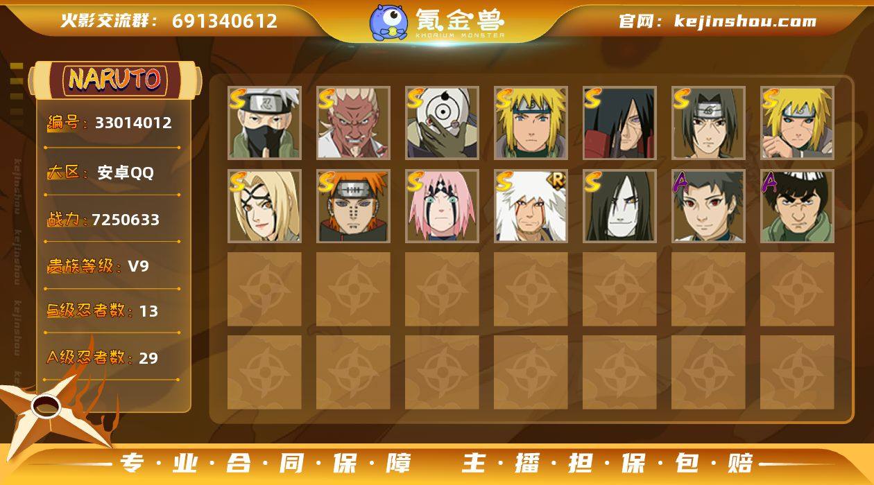 安卓qq-v9-700多万战力-优品小号-S忍者数:13- A忍者数:29 【S级忍者】旗木卡卡西「须佐能乎」(3星),艾「忍界大战」(3星),春野樱「忍界大战」(3星),宇智波斑「白面具」(3星),宇智波斑「秽土转生」(3星),波风水门「秽土转生」(3星),自来也「舞之豪杰」(3星),宇智波鼬「须佐能乎」(3星),佩恩「天道」(3星),波风水门(3星),大蛇丸(3星),猿飞日斩「秽土转生」(3星),纲手「百豪」(3星), 【A级忍者】宇智波佐助「须佐能乎」(2星),宇智波带土「暴怒」(2星),药师兜「半蛇斗篷」(2星),漩涡鸣人「仙人模式」(2星),漩涡鸣人「九尾查克拉」(2星),迪达拉「秽土转生」(2星),猿飞木叶丸(2星),宇智波带土「漂泊浪客」(2星),千代「近松十人卫」(2星),李洛克「忍界大战」(2星),秋道丁次「忍界大战」(2星),宇智波泉奈(2星),宇智波止水(2星),干柿鬼鲛(4星),猿飞阿斯玛(4星),迈特凯(5星),蝎(3星),迪达拉(2星),猿飞阿斯玛「秽土转生」(2星),我爱罗「疾风传」(3星),飞段(3星),飞段「死司凭血」(2星),波风水门「青年」(2星),日向雏田「最终章」(2星),日向宁次「忍界大战」(2星),长十郎「六代目水影」(2星),宇智波佐助「万花筒写轮眼」(2星),旗木卡卡西「万花筒...