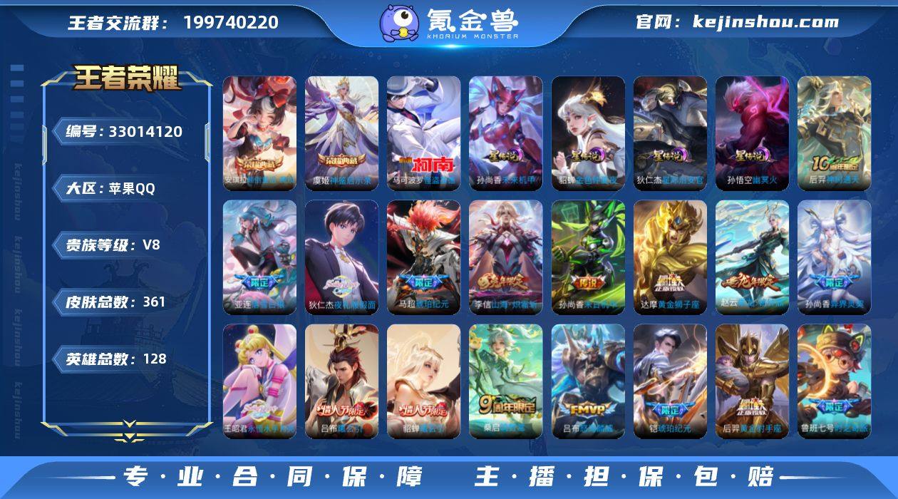 可二次【特价出售/店主推荐】:苹果Q-V8-最强王者段位-128英雄-361皮肤-2典藏皮肤-1珍品传说-4星元-21传说-109史诗 【英雄全皮】:刘邦全皮,孙权全皮,敖隐全皮,蒙恬全皮 【荣耀典藏】:虞姬神鉴启示录,安琪拉颠倒童话魔镜 【珍品传说】:马可波罗怪盗基德 【传说皮肤】:后羿神树通天,桑启鸣野蒿,亚连落雪白狼,吕布曦玄引,貂蝉曦玄引,赵云乘龙铭钟鼎,马超琥珀纪元,铠琥珀纪元,狄仁杰夜礼服假面,王昭君永恒水手月亮,鲁班七号时之奇旅,李信山海炽霜斩,吕布怒海麟威,孙尚香异界灵契,虞姬启明星使,达摩黄金狮子座,梦奇胖达荣荣,后羿黄金射手座,孙尚香末日机甲,孙悟空地狱火,狄仁杰超时空战士 【限定皮肤】:白起狰,蔡文姬夏日便利店,大乔绒语心约,虞姬夏日便利店,李白谪仙醉月,狄仁杰阴阳师,廉颇寅虎御盾,赵云皇家上将,墨子降魔,嬴政优雅恋人,孙尚香异界灵契,鲁班七号狮舞东方,鲁班七号时之奇旅,庄周高山流水,高渐离死亡摇滚,阿轲迷踪丽影,钟无艳超时空战士,芈月重明,芈月幻夜卜梦,周瑜赤莲之焰,夏侯惇朔风刀,甄姬女儿国国王,甄姬游园惊梦,甄姬落雪兰心,曹操烛龙,典韦穷奇,典韦岱宗,马可波罗山海玄木吟,狄仁杰魔术师,狄仁杰...