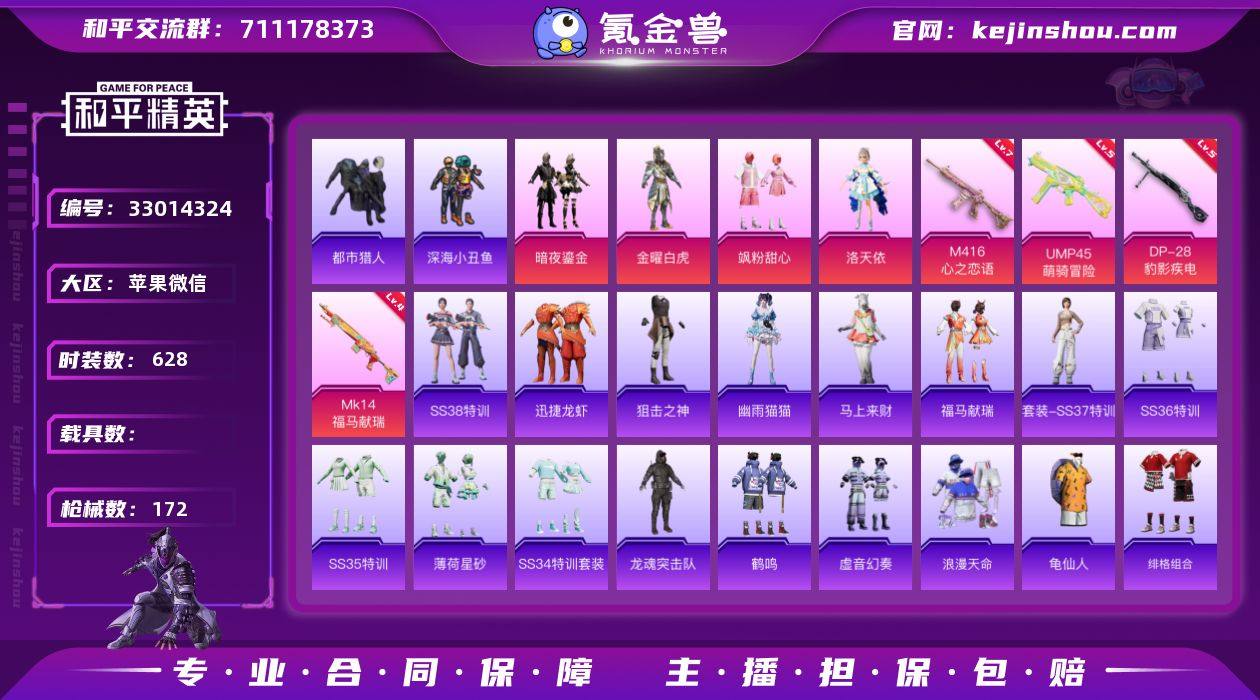 11王牌印记,历史最高超级王牌14星,含深海小丑鱼、都市猎人、暗影哥特(红眼罩)三大绝版身法神装,4把特效枪(1把7级满级),20件粉装,总热力值54904,苹果微信可二次实名,无违规无封禁,精品老号。可小刀,屠龙刀勿扰