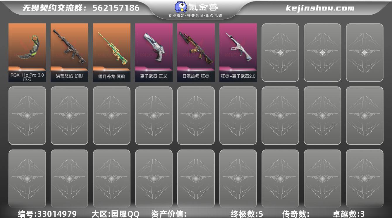 L3088 【精品号 】离子正义 狮子狂徒 流脓幻影 苍龙大狙 显卡爪 离子狂徒 库存: 10230剩余VP:95剩余R点:80 段位:白银1