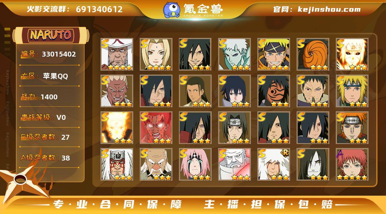 【HYC1763】V0/战力1400W/S忍27/A忍38/三星S-宇智波斑「秽土转生」/三星S-波风水门「九喇嘛连结」/三星S-宇智波带土「十尾人柱力」/二星A-达鲁伊「五代目雷影」/二星A-飞段「死司凭血」/二星A-宇智波止水/五星A-猿飞阿斯玛/五星A-蝎/二星A-宇智波佐助「侠隐江湖」/三星S-宇智波斑/五星A-迈特凯/三星S-千手柱间·木叶创立/二星A-神秘面具男 「忍者之路」/2星旗木卡卡西「神威对决」/二星A-长十郎「六代目水影」/二星A-桃地再不斩「秽土转生」/二星A-春野樱「百豪」/四星S-纲手/三星S-迈特凯「死门」/三星S-春野樱 「忍界大战」/二星A-宇智波佐助「万花筒写轮眼」/二星A-迪达拉/二星A-小南/三星S-自来也「仙人模式」/二星A-不动/三星S-宇智波斑「神驹佑将」/二星A-日向宁次·忍界大战/二星A-宇智波鼬/三星S-宇智波佐助「永恒万花筒」/三星S-大筒木金式「博人传」/二星A-长门「青年」/三星S-宇智波带土 「忍界大战」/三星A-飞段/三星S-佩恩「天道」/三星S-漩涡鸣人·宇智波佐助/三星S-波风水门/三星S-漩涡鸣人 「九喇嘛连结」/二星A-秋道丁次「忍界大战」/二星A-旗木卡卡西「万花筒写轮眼」/二星A-小南「夏日泳装」/三星A-我爱罗「疾风传」/二星A-大蛇丸 「新春限定」/二星A-波风水...