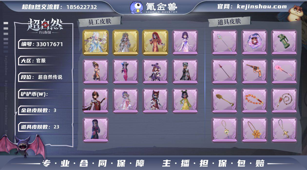 ZR927 金色皮肤数量:3 粉色皮肤数量:0 红色皮肤数量:0 紫色皮肤数量:10 道具皮肤数量:23 外观:圣光之谕 镜花辞 瑶台梦 千夜星谕 仙锋小姐 耀眼的你 莓果陷阱 呱呱雨衣 丝缕哀歌 甜梦派对 琢玉怀乡 庆宴绮愿 黎明猎手 道具:罪棘 新春炸响 伏妖塔 赞萌露比水枪 紫霄 蔷薇物语 飞花令 波塞冬 心跳眼镜 珍珠芭乐莓莓 龙鳞 露露扇 金丝眼镜 缚誓之锁 金戈玄铜 鸣沙鼓 花落精绝 红运福虎 赞萌波板糖 乘风溯雪 祝祷词 happy猫 新星时代 饰品:烛光纪念 嘻嘻头套 鱼头怪头套 面具马头套 哈士奇头套 烈焰红唇头套 火爆了头套 太空鲨头套 雪墩墩头套 呆滞头套 马上有钱 樱桃奶油布丁 饺饺者头套 萨卡班甲鱼头套 卑微头套 惊魂南瓜头套 蒜了八 炙热烧烤 滑稽头套 大葱明头套 像素朋克墨镜 后室幸存者头套 钗头凤 孤独对望 潮汐小海兔 白鼬趴趴 牛啤背包 子夜证词 动作:一点点星星摇 鸳鸯戏 七仔摇 心跳摇 新年摇 舞台中心 luvaboy 鹏友摇 拜年 带你逃跑吧 蝴蝶步 抬手 要糖 举牌 工牌背景:卷珠帘 珊瑚海 永夜巡礼 心同野鹤 圣光之誓 琢玉成佩 春和景明 粉嫩小海狸 工牌动作:虔诚之姿 轻躯鹤立 员工:阿念 临云 兰 逍遥 小满 爱德华 薇薇安 零 莉莉 艾伦 小黄 爱丽丝 巫铃儿 累...