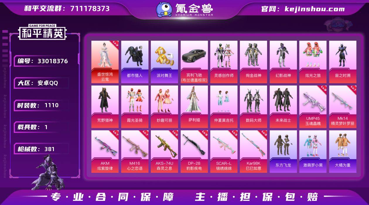 【特价出售】QQ钱包无法注销安卓Q-1红装6稀有1载具12粉装11特效枪27热门289套装381枪皮 127335热力值 19印记 历史超级王牌19星 【1红装】 盛世惊鸿-云鸾 (3级) 【6稀有】 AKM-缤纷海域 AKM-百万伏特 都市猎人 浪漫天命 派对舞王 派对舞王(金靴子) 【1载具】 宾利飞驰布罗德盖棕双色 【12粉装】 萨利娅 炫光之旅 幻影战神 宙之时溯 妙趣可丽 荒野猎神 仲夏莫吉托 数码大师 未来战士 灵感创作师 绚金战神 霞光圣骑 【11特效枪】 SCAR-L-锦绣绵绵 (5级) M416-心之恋语 (7级) AKM-炫紫旋律 (7级) AKS-74U-森灵之息 (5级) Kar98K-巳巳如意 (5级) DP-28-豹影疾电 (5级) Mk14-精灵梦叶罗丽 (7级) UMP45-玉魂晶魄 (9级) AKS-74U-森灵之息 (5级) Mk14-福马献瑞 (5级) ACE32-萌骑漫游 (2级) 【27热门】 Mark.06 小丑鱼 龟仙人 雪山精英 东方飞龙 鹰眼刺客 激萌罗小黑 大橘为重 裁决冥王 神秘黑猫 暗影哥特 粉红小猪 水银刺客 漫步者 薄荷蓝莓 白虎圣者 机械英豪 破蛋小黄鸡 风华少年志 白月香洋装 新侠客行 黑色刀锋 极速红龙 英勇保护者 M416-魔法学院 M762-奇异狩猎者 Kar98K-古堡领主 【3飞行器】 龙翔九天飞行器 齐天大圣飞行器 歌者泠鸢飞行器 【5头盔】 甜心宝贝头盔 百万伏特头...