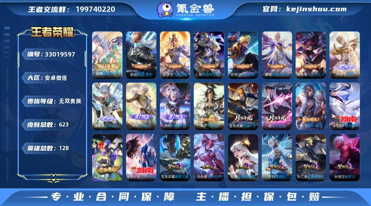 YJ11610 安卓微信 无双V10 623皮 6典藏4无双7珍品传说貂蝉馥梦繁花【10W流光积分 满级灵宝 112按键1天幕】7星元246限定91传说 发育路30段 对抗路27段 全能高手 2243皮肤碎片1898英雄碎片 135幸运值 营地号:2124583302【珍品传说】怪盗基德,孙策时之奇旅,江户川柯南,兔狲·蓬尾,黑崎一护,朽木白哉,沧流箭‌, 【无 双】韩信群星魔术团,碎月剑心,馥梦繁花,天机白泽,无相, 【荣耀典藏】九霄神辉,全息碎影,鸣剑·曳影,杀手不太冷,银·白咏叹调,神鉴启示录, 【星元皮肤】金色仲夏夜,幽冥之眼,幽冥火,未来机甲,时之思念,星际治安官,玉鸾吟, 【热门限定】愿照·众生和,神骥·镇沧海,神骥·鸣幻洲,神骥·赴朔漠,神骥·越千峰,神骥·逐星野,神骥·聚万邦,千劫归真,愿照·岁时盈,愿照·千秋盛,愿照·山河定,愿照·九州拓,愿照·福禄聚,器灵·浮梦炉,逐花归海,落雪白狼,凤求凰,至尊宝,乘龙·铭钟鼎,白虎志,青龙志,玄武志,神威,龙胆,烈魂,武圣,冰锋战神,千劫归真,白鹤梁神女,夜都魔契,琥珀纪元伽罗,超元猎域,如梦令男,异界灵契,零号·赤焰,深海之息,永曜之星,御风骁将,祈雪灵祝,傲雪梅枪,寅虎·心曲,寅虎·御盾,默契交锋女,逐梦之影,逐梦之翼,逐梦之音,白晶晶,引擎之心,淬星耀世,辉光之辰,时之彼端,时之奇旅,飞...