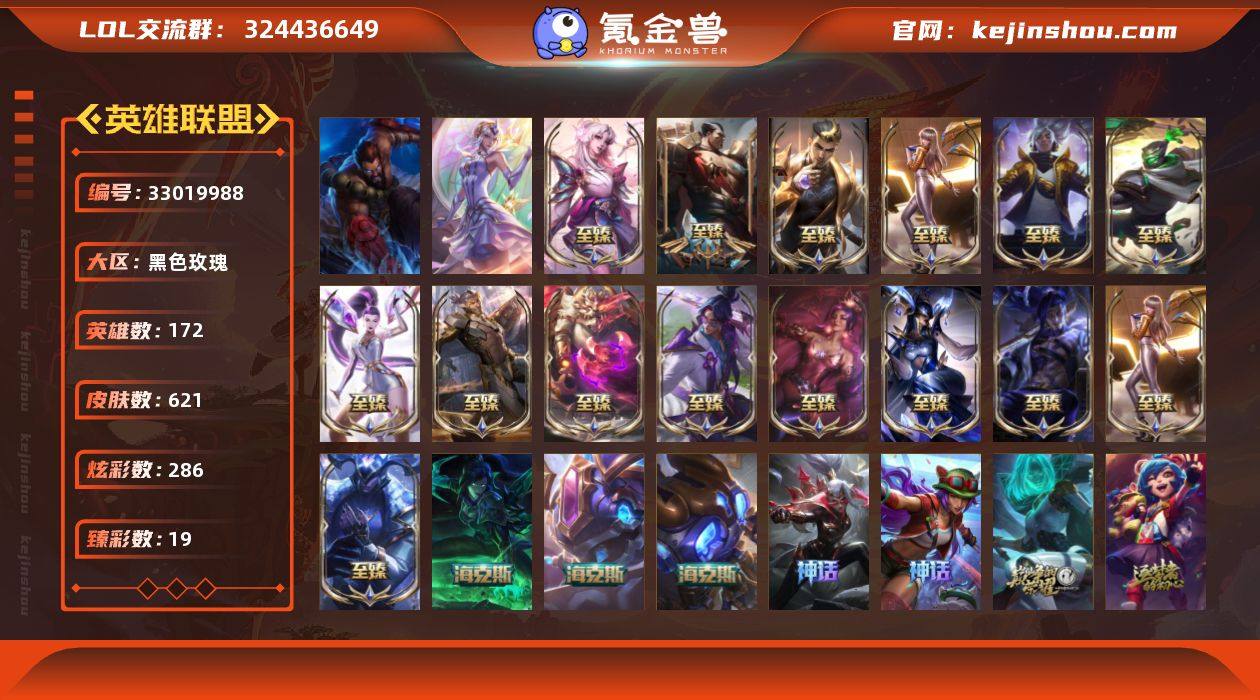 未定级段位-172英雄-621皮肤-286炫彩-2终极-23神话-98限定-60传说-122史诗 【热门头像】:爱意绵绵头像,觅心之翼奎因头像 【神话皮肤】:十周年纪念安妮,源代码乐芙兰,十五周年纪念希维尔,神凰行者瑞羽圣凰艾尼维亚,殿堂传奇薇恩 【至臻皮肤】:至臻灵魂莲华易,至臻剪纸仙灵希维尔,至臻征服者贾克斯,至臻灵魂莲华拉克丝,至臻神龙尊者均衡之龙沃利贝尔,至臻凯旋将军德莱厄斯,至臻T1杰斯,至臻青花瓷丽桑卓,至臻KDA卡莎,至臻KDAALLOUT卡莎,至臻KDA卡莎(2022),至臻真实伤害亚索,至臻墨之影武者亚索,至臻DRX亚托克斯,至臻源计划逆流塞拉斯 【海克斯皮肤】:海克斯科技阿木木,摄魂使者薇恩,海克斯科技克格莫 【臻彩皮肤】:天龙之子卡莎飞龙乘云,无畏骑士瑟庄妮赤子初心,墨之影武者亚索金墨耀影,冠军典狱长锤石凯旋圣装,冠军之隐劫凯旋圣装,神龙尊者圣龙李青龙腾云起,咖啡甜心璐璐焦糖布丁,星之守护者金克丝黑洞,霸天巨兽雪崩墨菲特,星之吞噬者莫甘娜热情之末,灵魂莲华锐雯流火,可爱可爱粉红红布里茨,星之守护者阿卡丽未来之光,魔女阿卡丽虚荣,净雪之月莫甘娜冬虹,红莲之刃锐雯,心之钢伊泽瑞尔天纵才华 【年限皮肤】:古琴余韵娑娜,南天之怒...